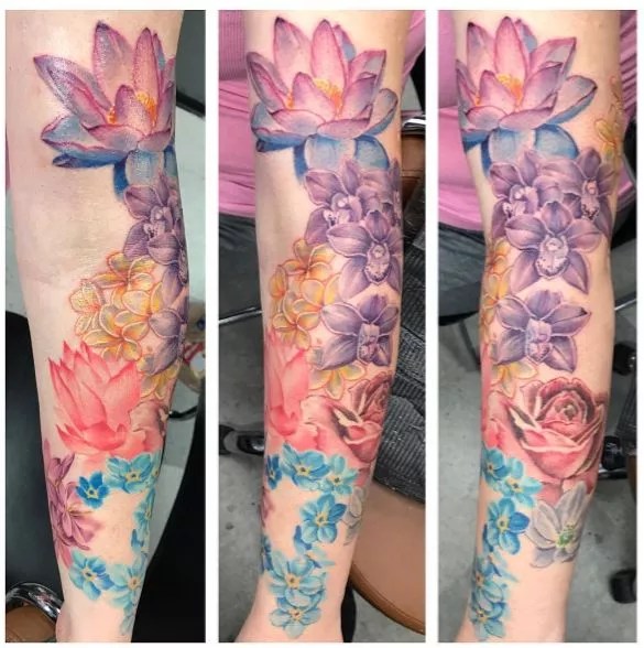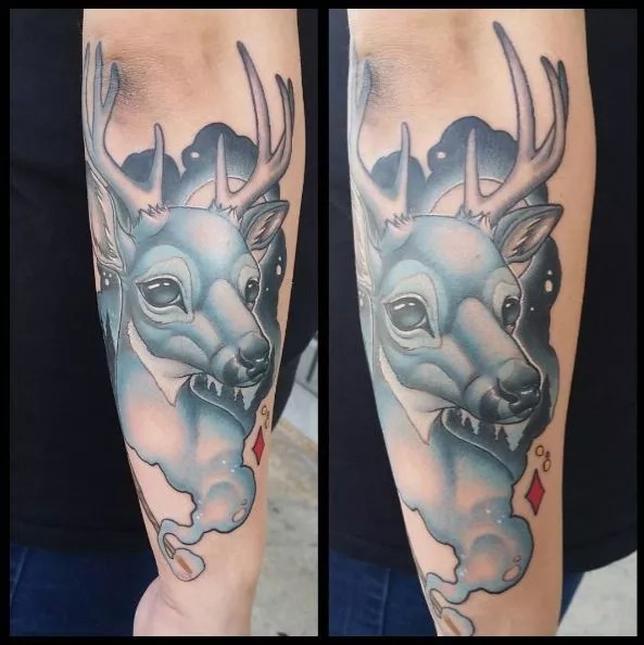Balancing somewhere between Neo-Traditional and New School, Sweet Laraine’s style is bold, bright, clean, and expressive. Her line-work is impeccable, her color gradients are smooth and highly saturated, and her designs are top of the line, grade-A eye candy.