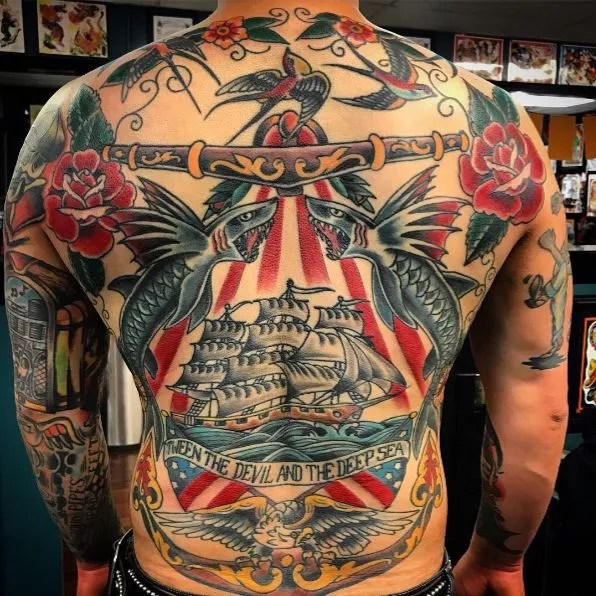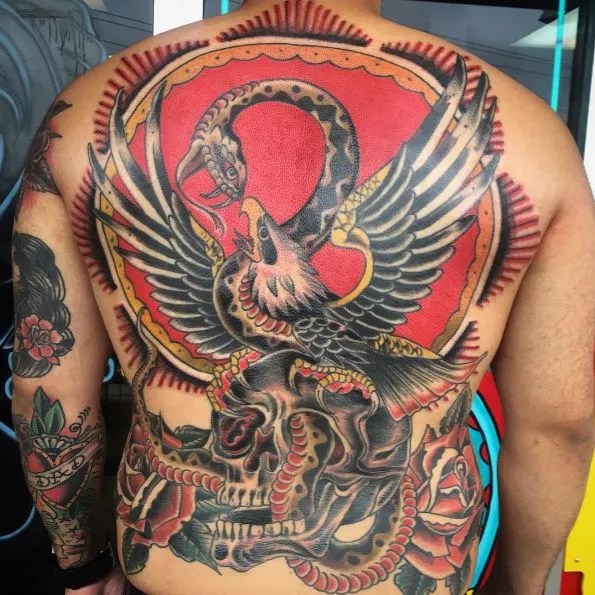 As early as he can remember, Donohue says that he was always drawing. Eventually, he was put into art classes as early as seven years old, where he started learning how to work with charcoal and pastels. This artistic background translated over to tattooing nicely, because when Dylan Donahue does Traditional American, he does it right. Smooth lines? Check. Rich colors? Check. Uniform textures? Check, check, check. Don’t worry when you’re with Donahue, you’re in good hands.