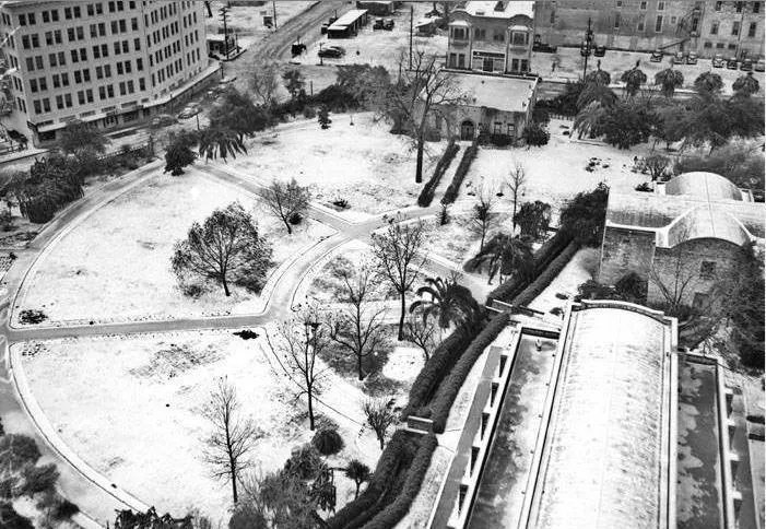 Snow on the grounds of the Alamo.January 1949Dec. 31, 1943