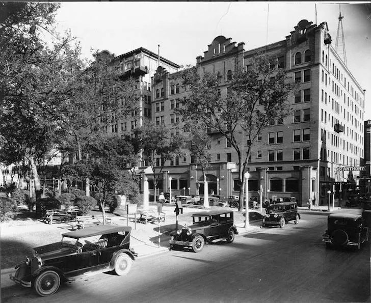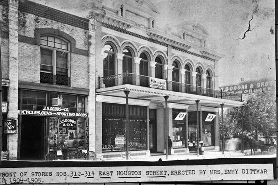 San Antonio Conservation Society, Raba Collection1895, Maverick Bank Building at the corner of Houston and Alamo streets.Circa 1905, The Dittmar Building on 312-314 E. Houston St.The Joske Bros. Store at Alamo and Commerce Streets before its 1909 expansion.The Fairmount Hotel on East Commerce St., which was built in 1906, before it was moved to South Alamo in 1985. Check out a video of the move here.Circa 1913, The exterior of the Dullnig Building on the corner of East Commerce and North Alamo St.Circa 1915, The Texas Theatre on Houston Street.Circa 1915, San Antonio City Hall, which was completed in 1891. In 1927, a fourth floor was added and is still being used today.1920-29, St. Anthony Hotel and Travis Park on Navarro Street.