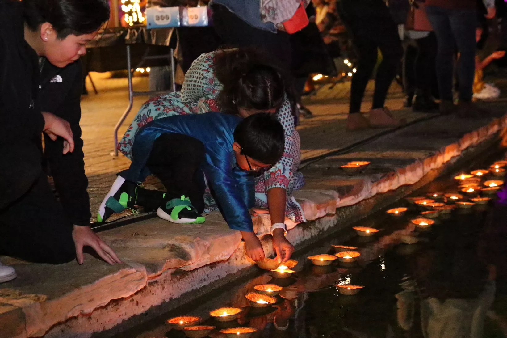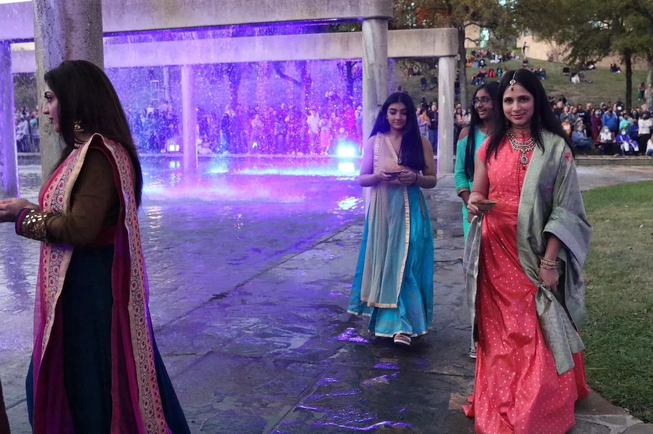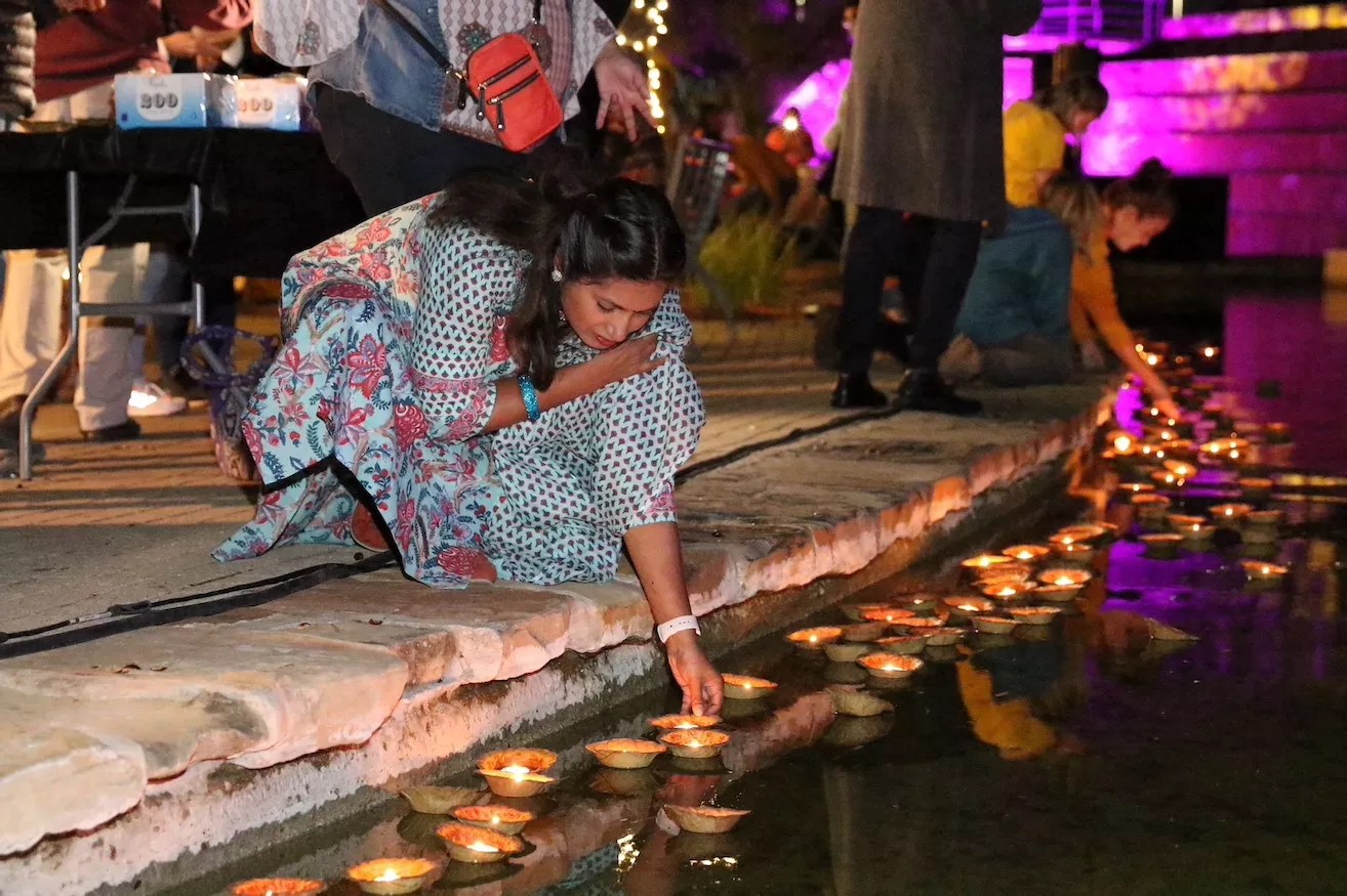 Saturday’s celebration included dance, music, food and the placement of hundreds of floating candles, or diyas, on the San Antonio River.