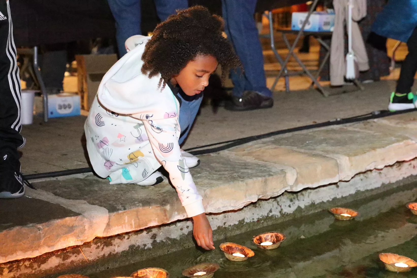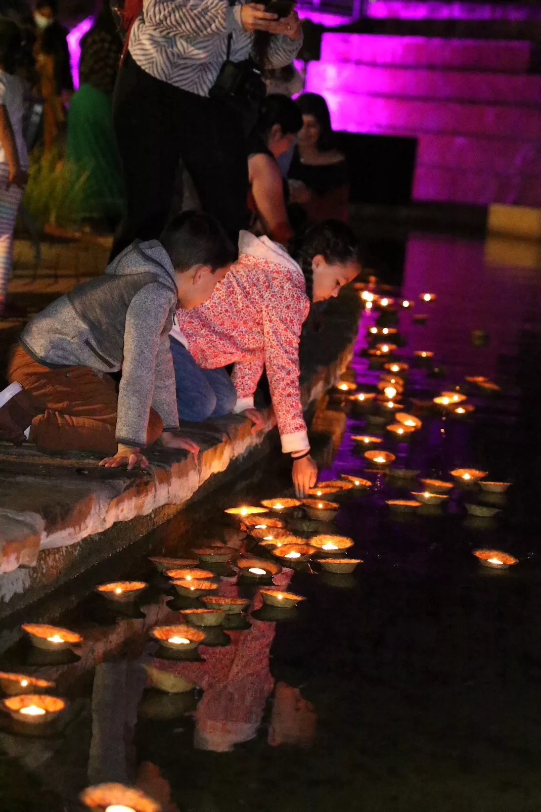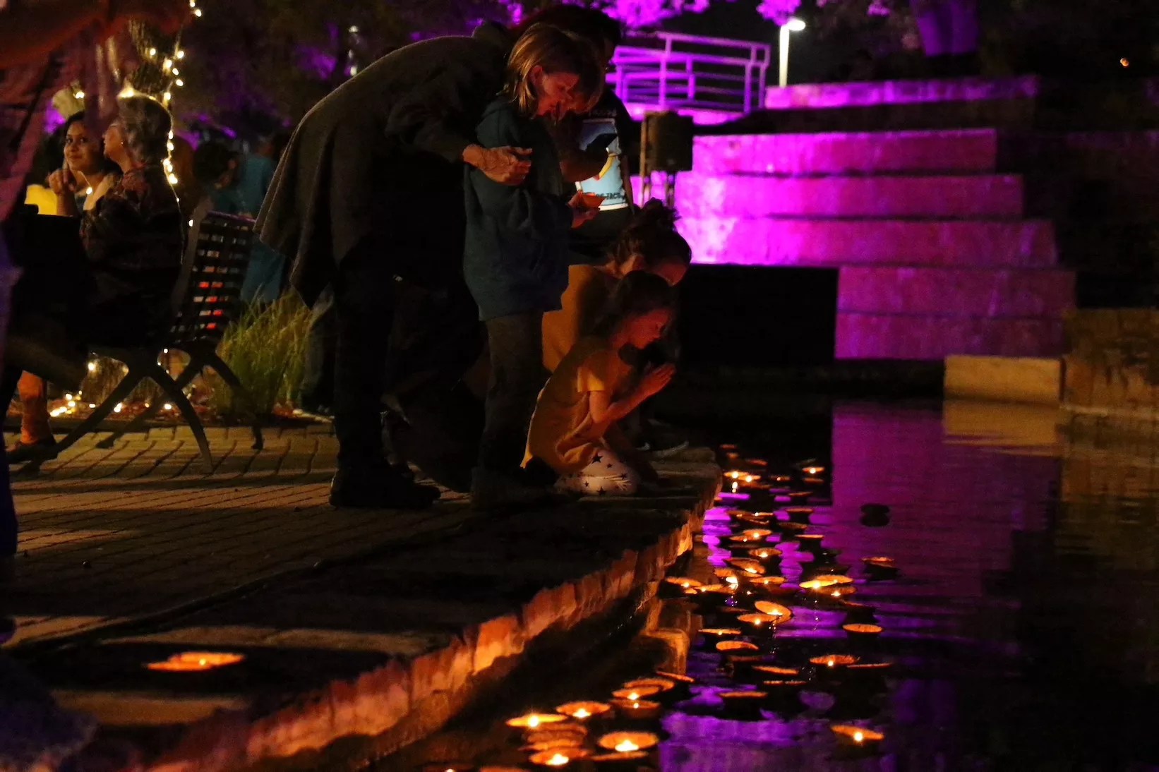 Saturday’s celebration included dance, music, food and the placement of hundreds of floating candles, or diyas, on the San Antonio River.