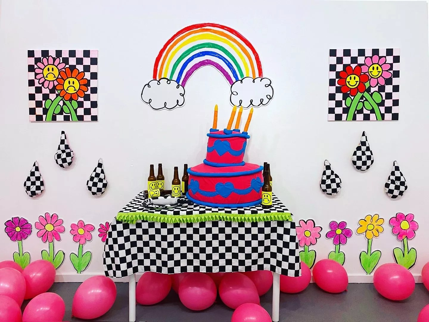 Expanding on her newfound love for sewing, she created fabric sculptures based on fond childhood memories, including a birthday cake complete with candles and a knife, and a functional piñata filled with little red hearts.