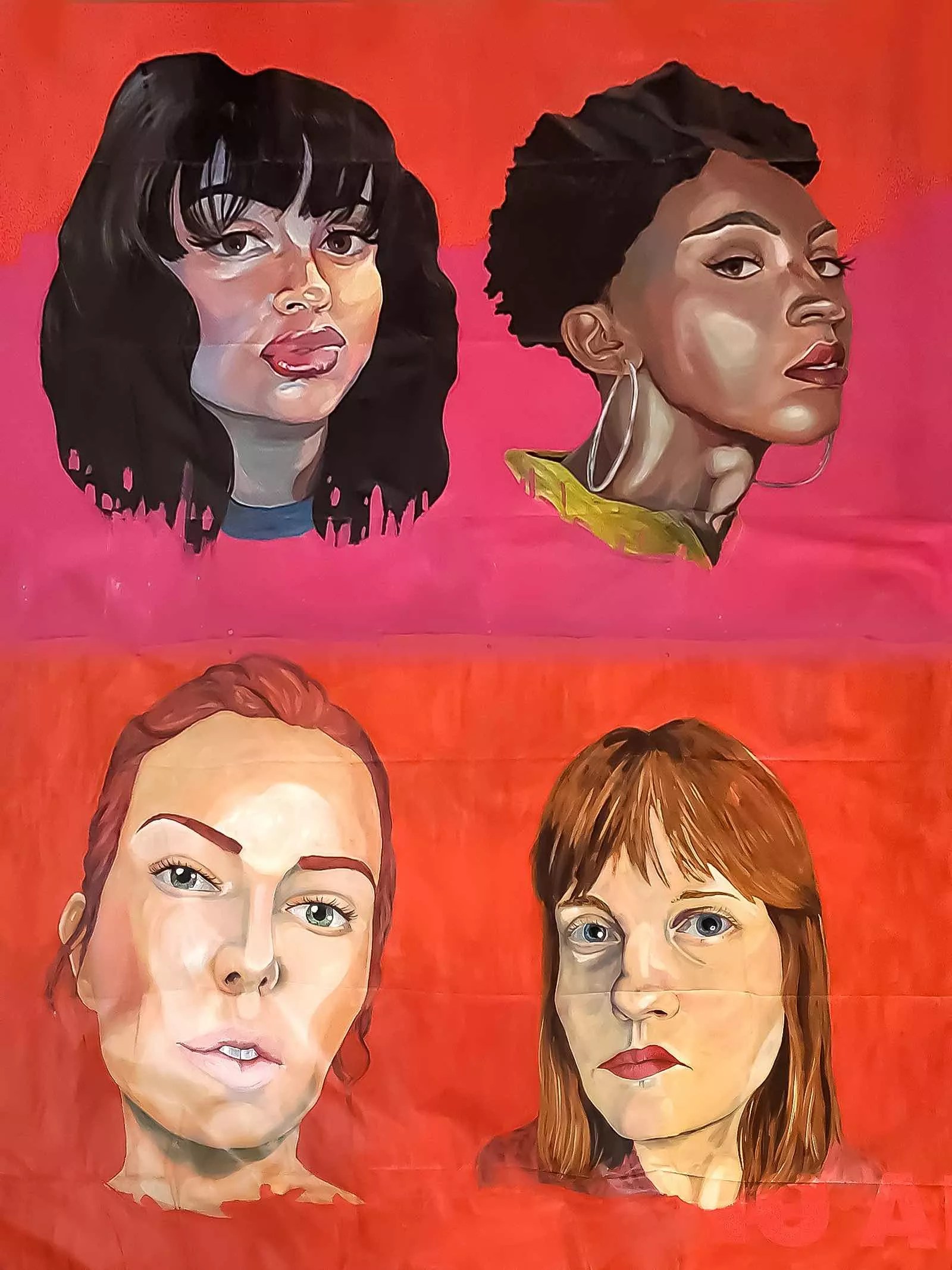 A Wyoming native who now calls San Antonio home, artist Madison Cowles Serna seeks to amplify the voices of rape and abuse survivors. For Withstand, she collaborated with 16 survivors of sexual assault on a monumental painting on repurposed billboard vinyl. In addition to allowing each of them to select the photograph she worked from, Serna invited her subjects to share their stories through letters she incorporated into a text-based sculpture.