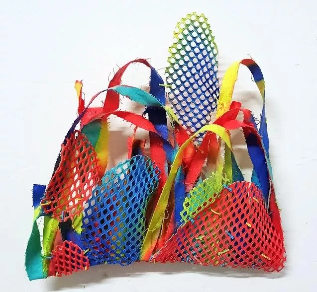 “By embellishing and hardening fabric with vivid colors, tangled forms, and other objects, my intention is to visually destroy everything around it,” he writes in his artist’s statement.