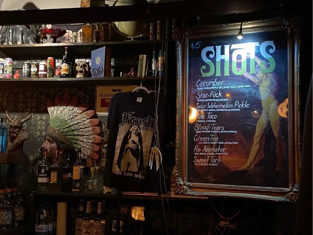 39. Near Dark This death-themed bar blends vampiric vibes with craft cocktails for one of the city’s more unusual drinking experiences. A skeleton sits atop the liquor rack and dark tunes, from metal to death-rock, often blare over the speakers. The drinks are equally intriguing, including the appropriately named Not Today Satan and a formidable classic Tom Collins. Emo and nu-metal nights along with various service-industry events add to the appeal. 1024 S. Presa St., (210) 600-4009, instagram.com/neardark_sa. Credit: Michael Karlis