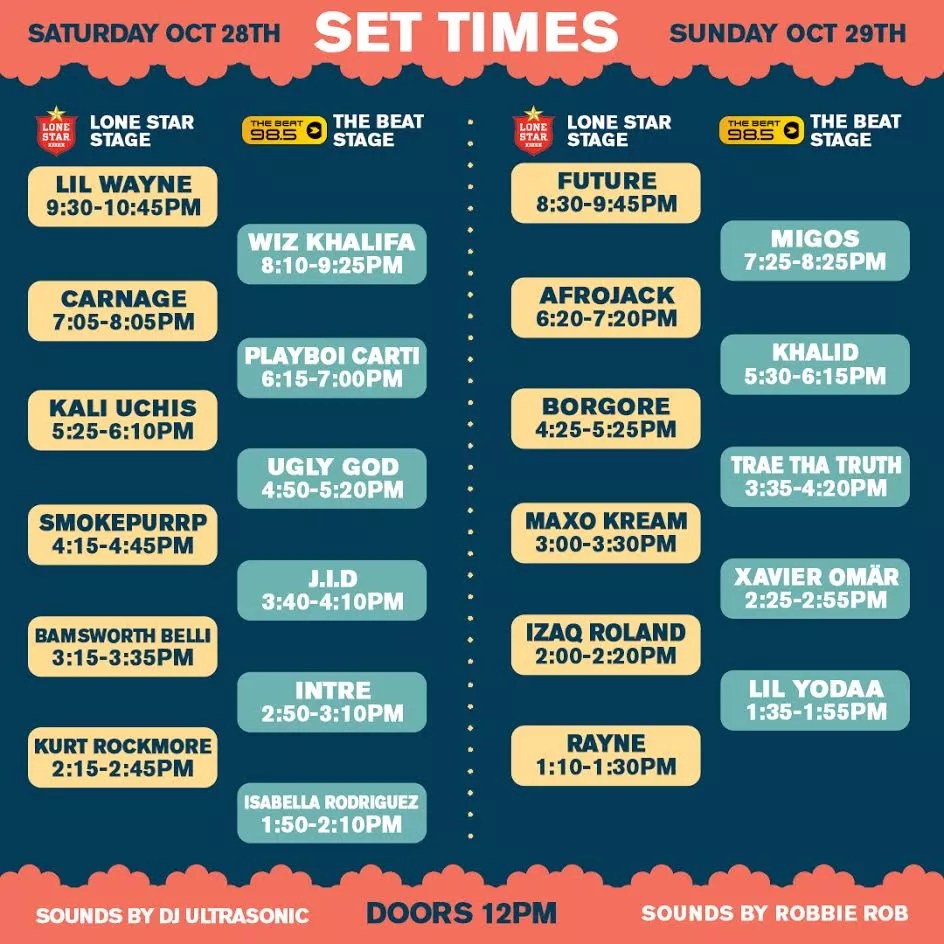 This year, the two-day festival will incorporate two separate stages – The Lone Star Stage and The Beat Stage, with performances staggered between the two so attendees don’t miss any of the action (which, if you’ve gone to fests like ACL is pretty cool).