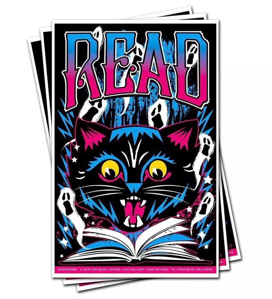 Within a few minutes of glancing over Regina Morales’ work you can tell she’s one of the best in town. Though her themes and styles are broad, there’s a distinct quality to her work that carries into all of her designs. From monsters to eyeball pizza, conjunto festival flyers and stoned Spurs mascots, Morales is definitely one of the go-to artists for San Antonio bands looking for quality work.