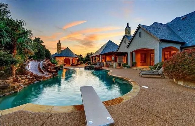 The 2005 stone-clad home rests on a 1.5-acre lot in Fort Worth, not too far from Selena’s hometown of Grand Prarie.The double front doors lead to the open foyer, which show off the grand staircase.A bar right off the bat? Selena has good taste.So this is where Selena enjoys mimosas with her squad during brunch.Selena really loves adding a splash of color with those teal cabinets.Those pink couches really pull the room together.Imagine how cozy this is when the fireplace is being used?The master bedroom and bathroom are impressive. The bathroom includes double sinks, a makeup vanity, soaking tub, and separate shower.The home has 5 bedrooms and 6.5 bathrooms. That’s more than enough space for her closest friends (maybe this was T-Swift’s guest room).Can you imagine Selena just casually doing her makeup her?It makes sense that the pop star would have cute decorating skills.Simple, but classy. Just like the 25-year-old star.This game room looks like something out of a magazine – so naturally it would be in Selena’s home.Selena really likes her muted colors.The movie theater features recliner seats and a popcorn machine. Oh, and a very beautiful paint job.These bedrooms are spacious to say the least.We all know Selena is a Spurs fan, but maybe she shoots hoops on her own.Who knew that Selena liked golfing? We’re sure she put this putting green to good use.The lagoon-style saltwater pool is complete with a waterfall, slide, diving board and spa.Woah.