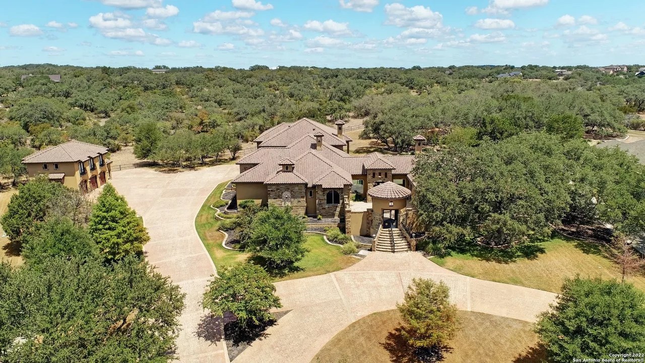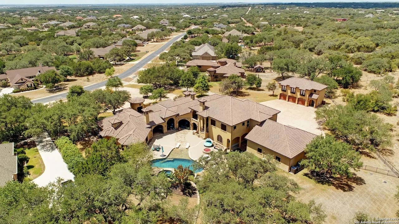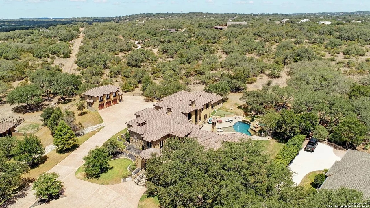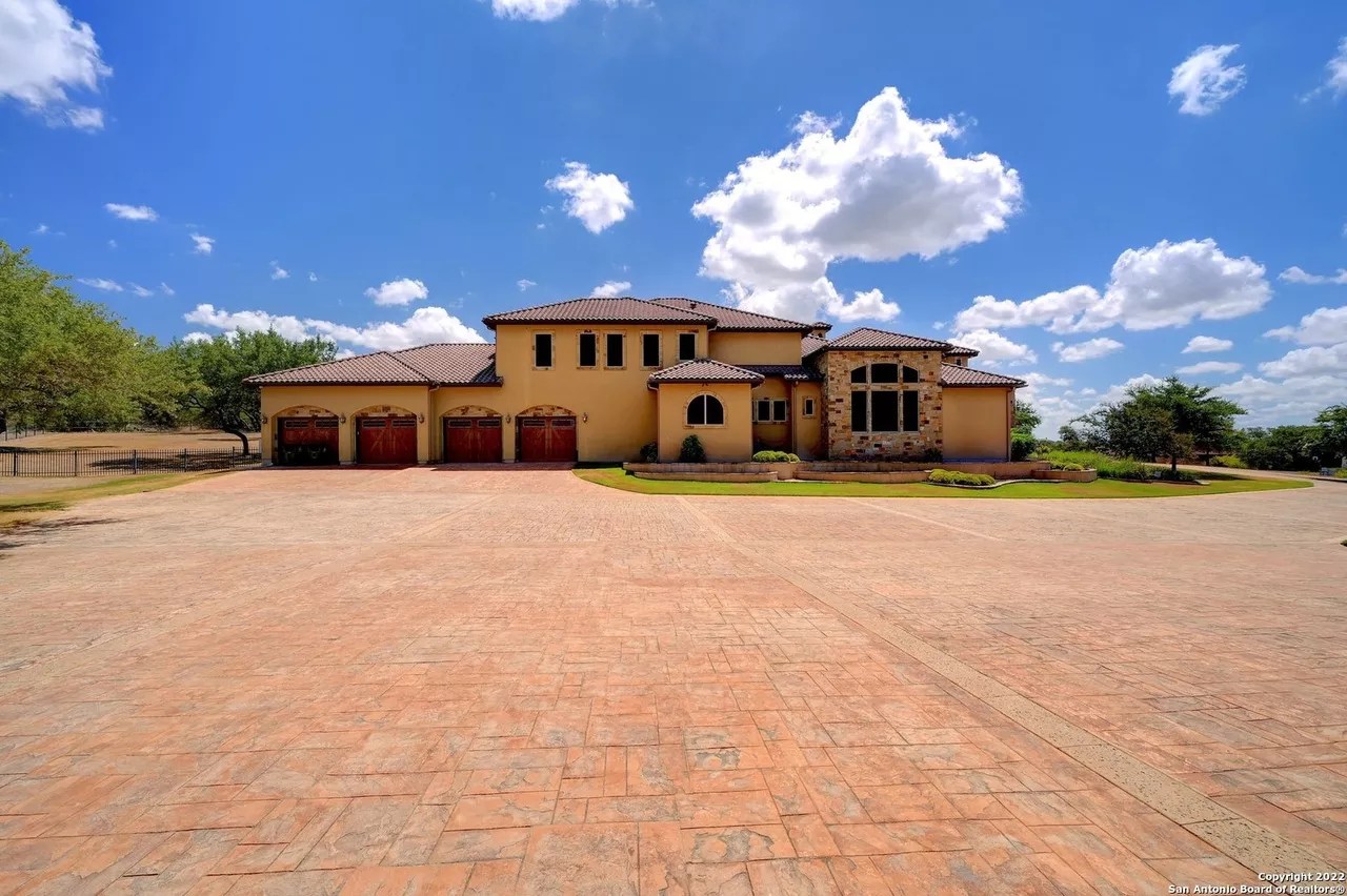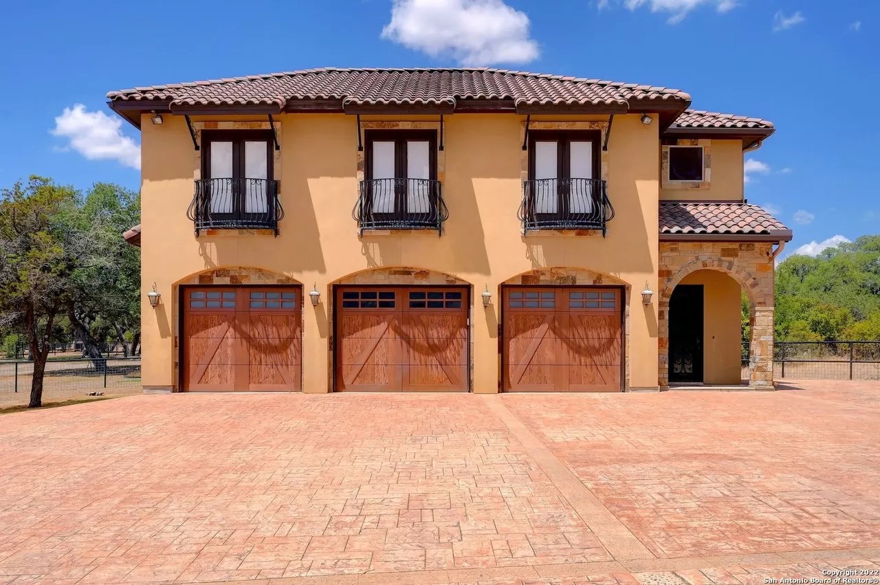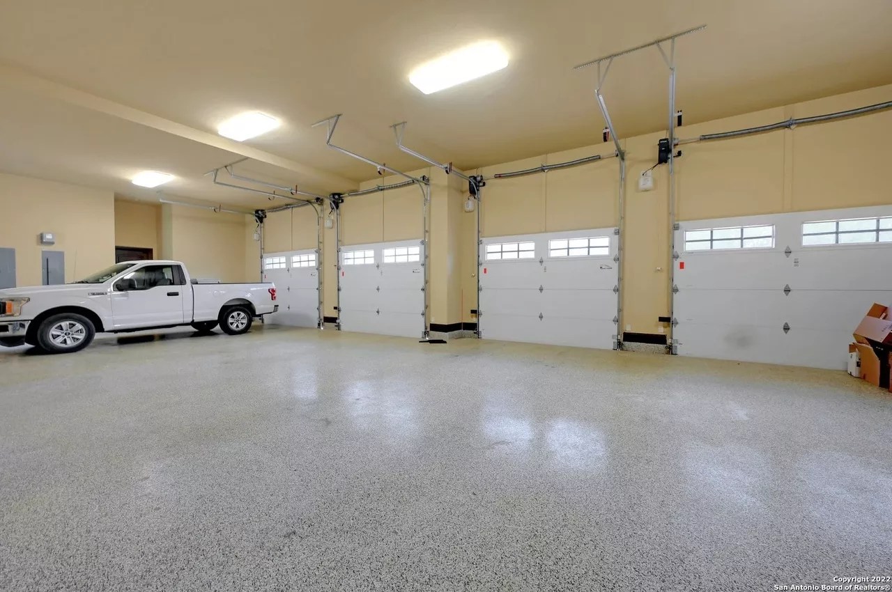 The sprawling New Braunfels home boasts bays for seven vehicles plus hydraulic lifts and compressed air for tools in its two garages.