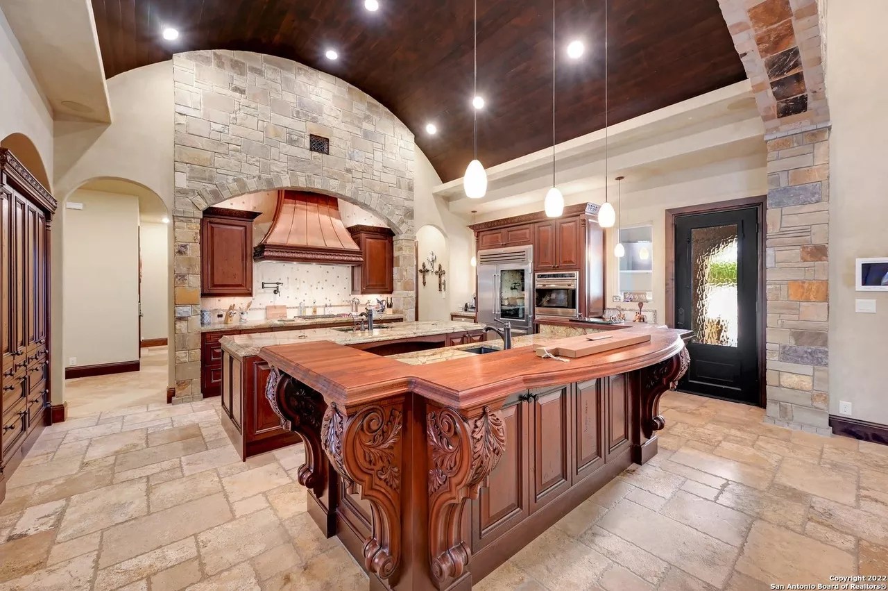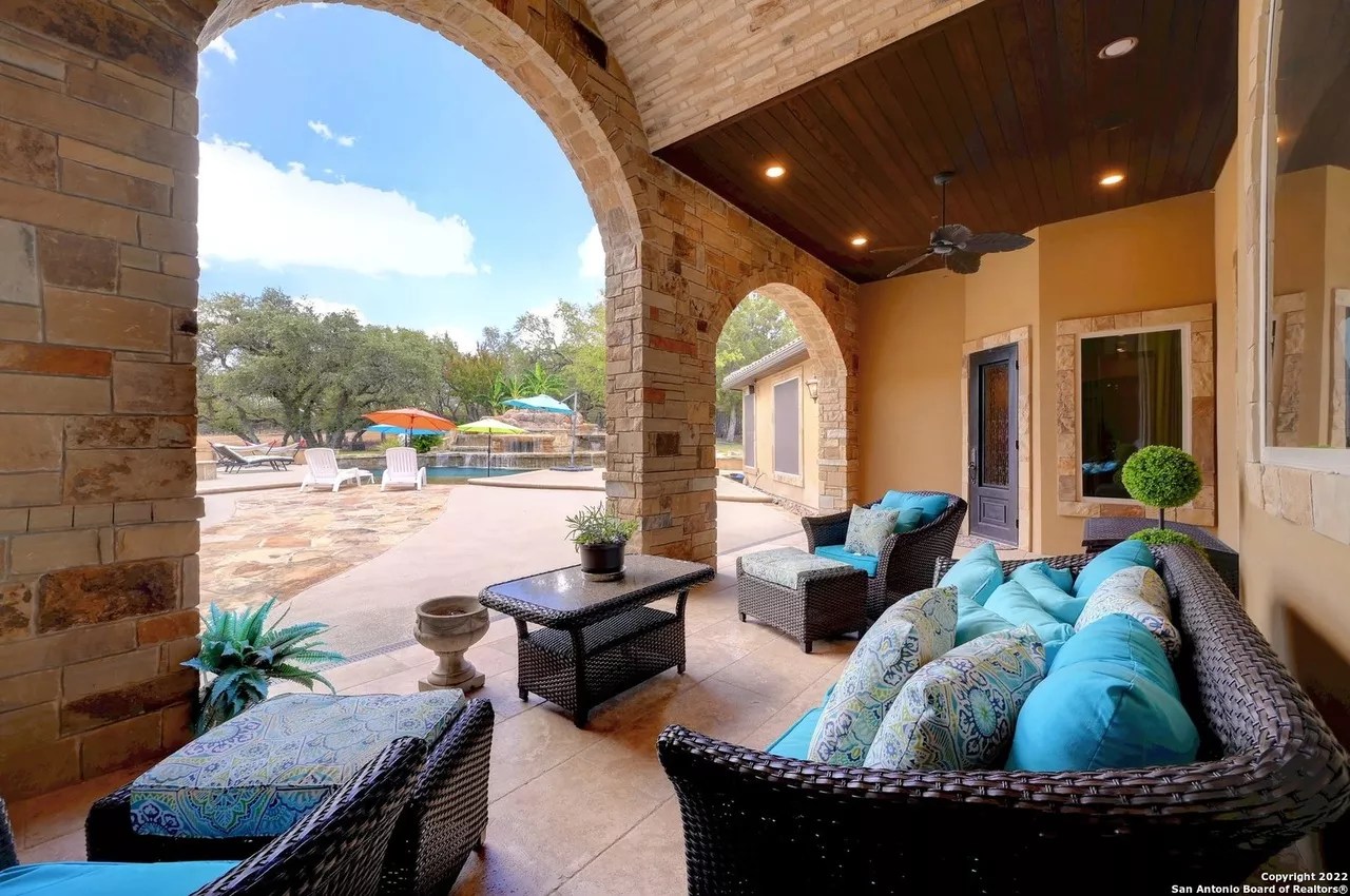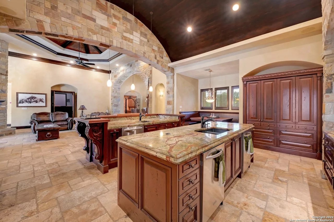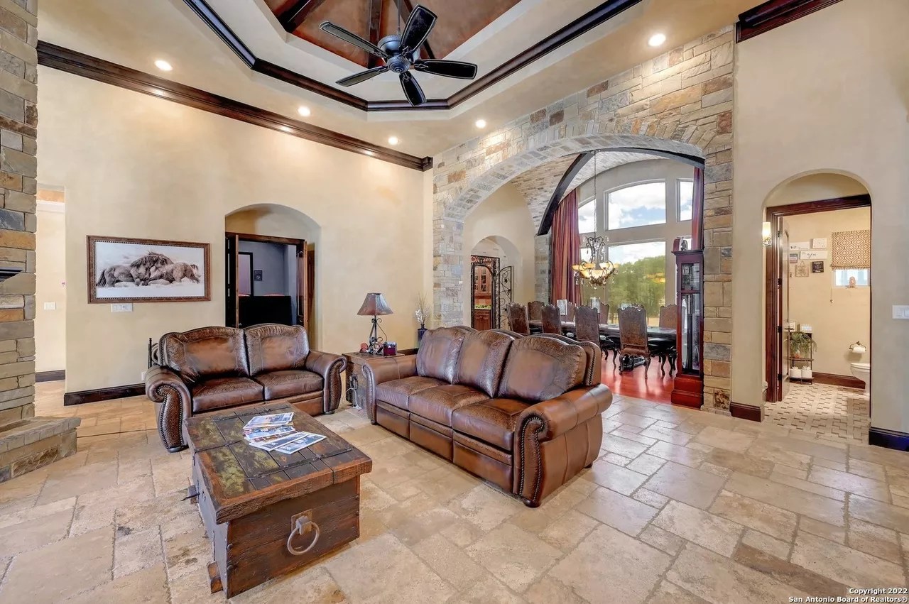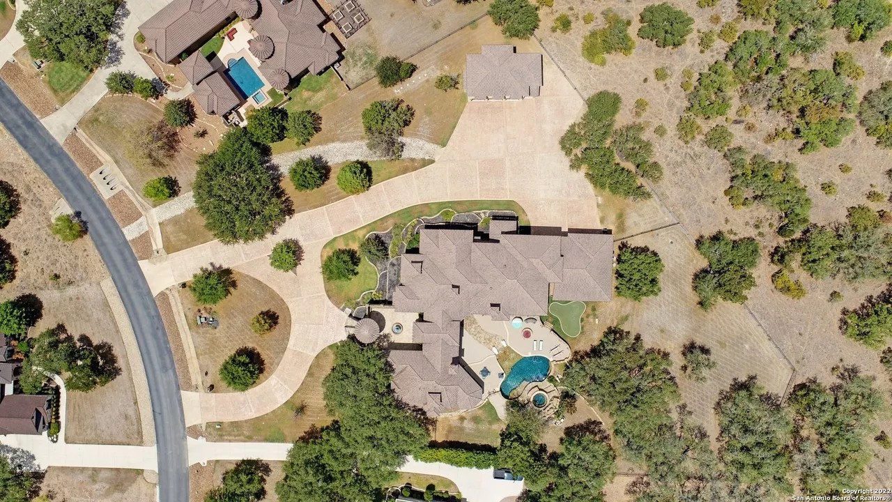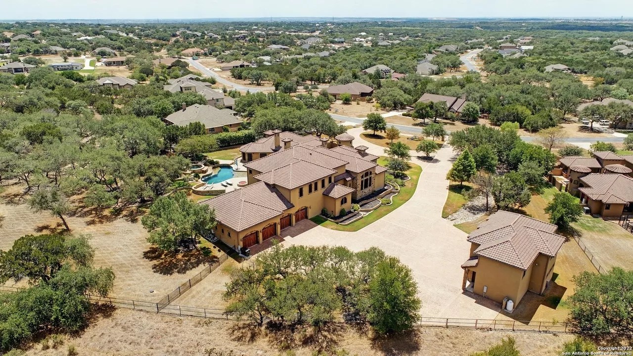 The sprawling New Braunfels home boasts bays for seven vehicles plus hydraulic lifts and compressed air for tools in its two garages.