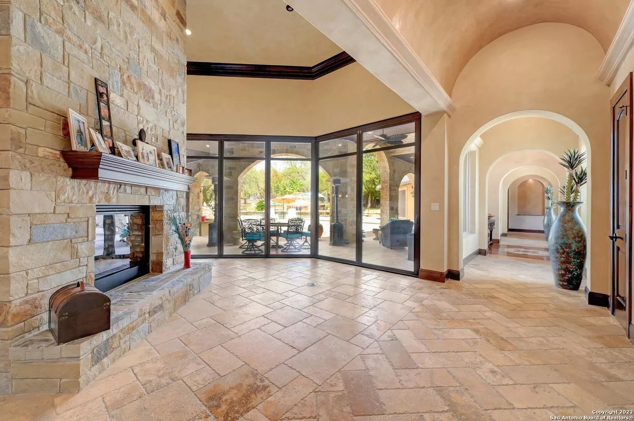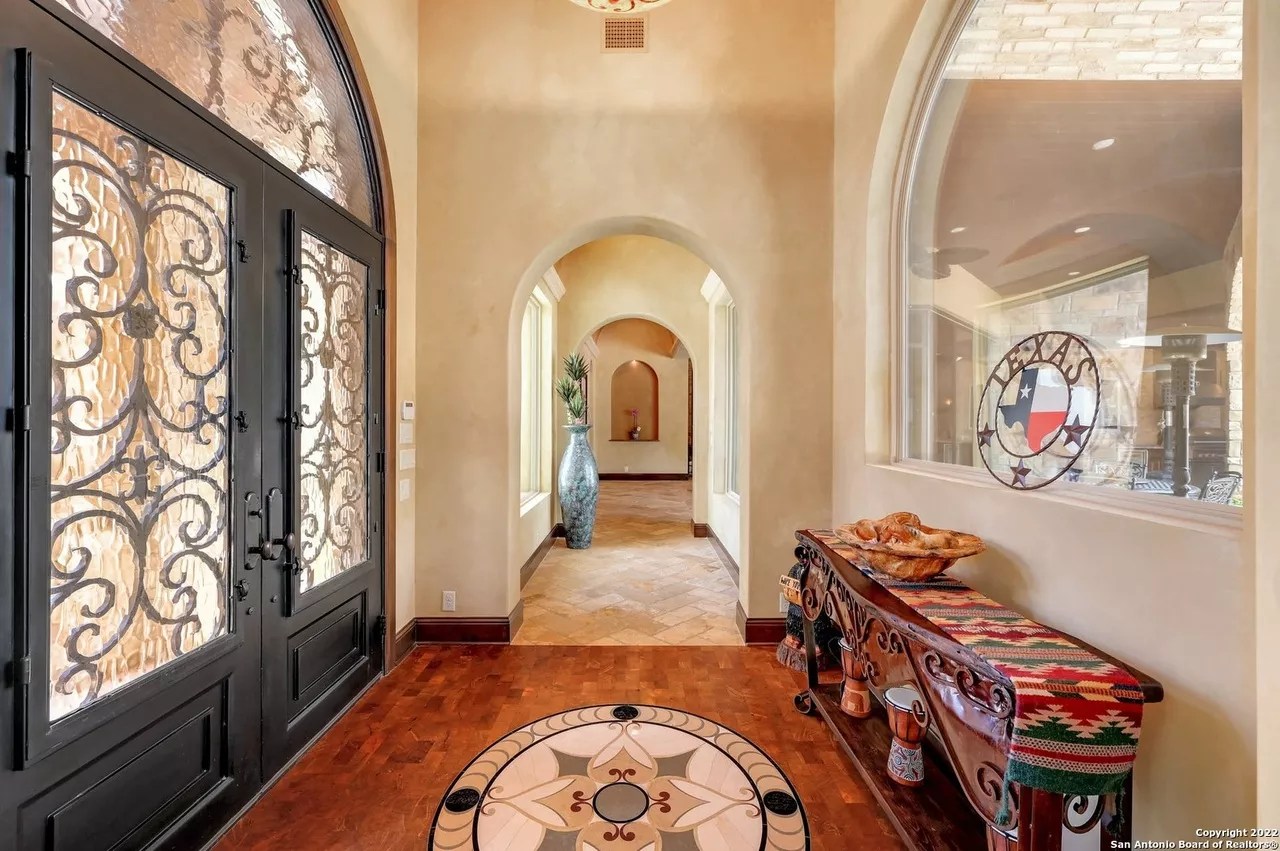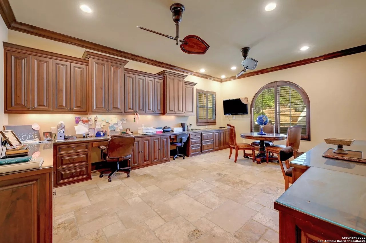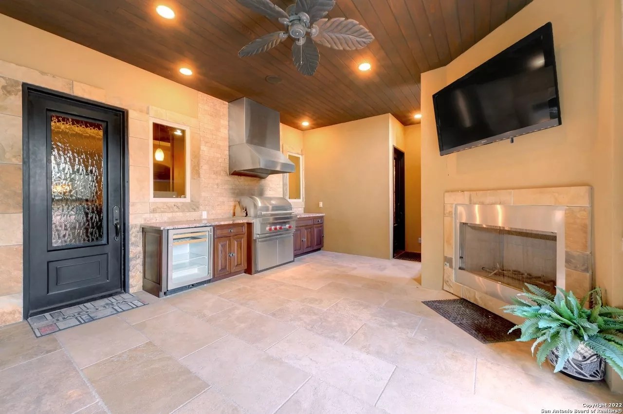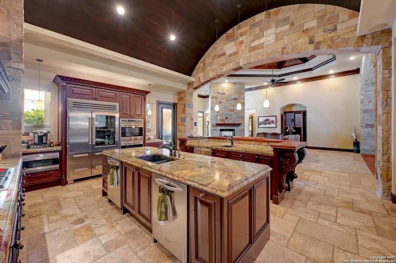 The sprawling New Braunfels home boasts bays for seven vehicles plus hydraulic lifts and compressed air for tools in its two garages.