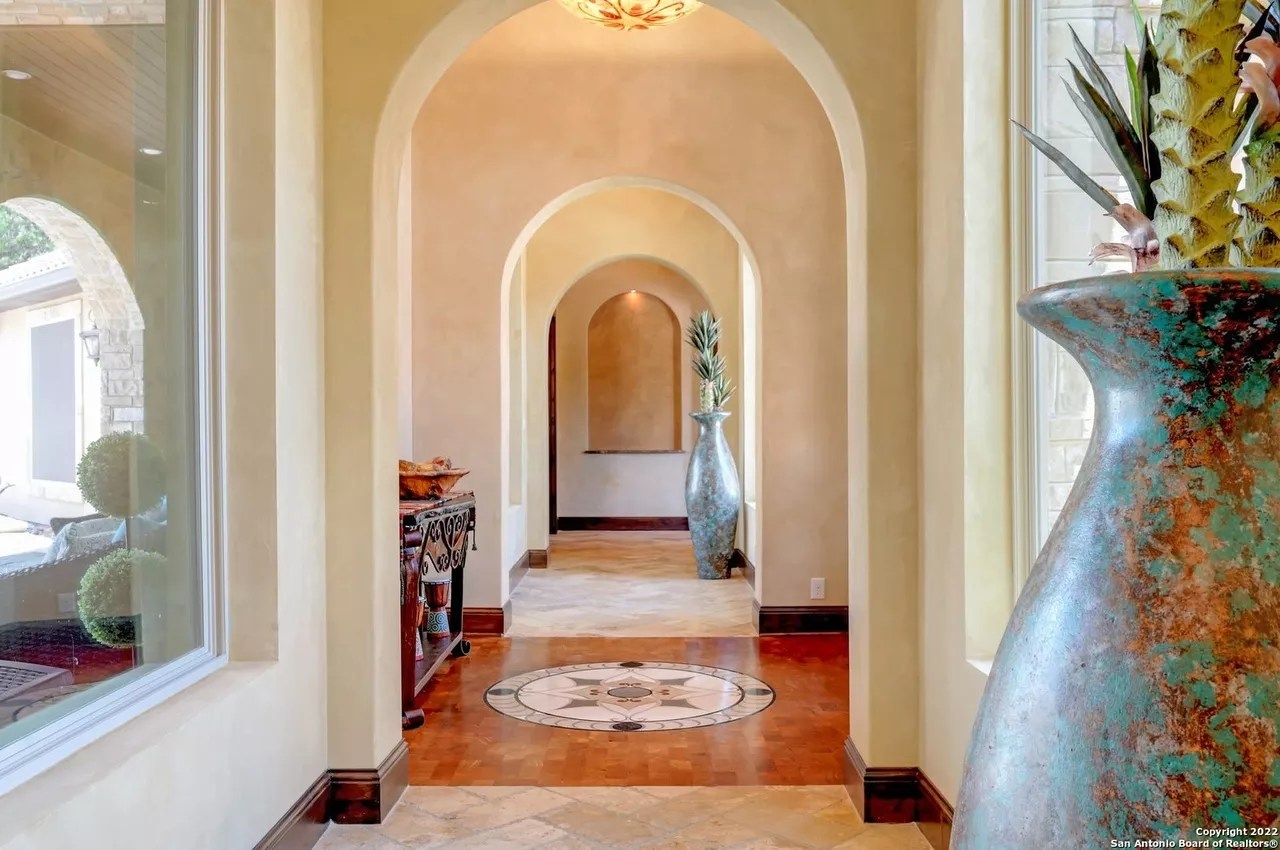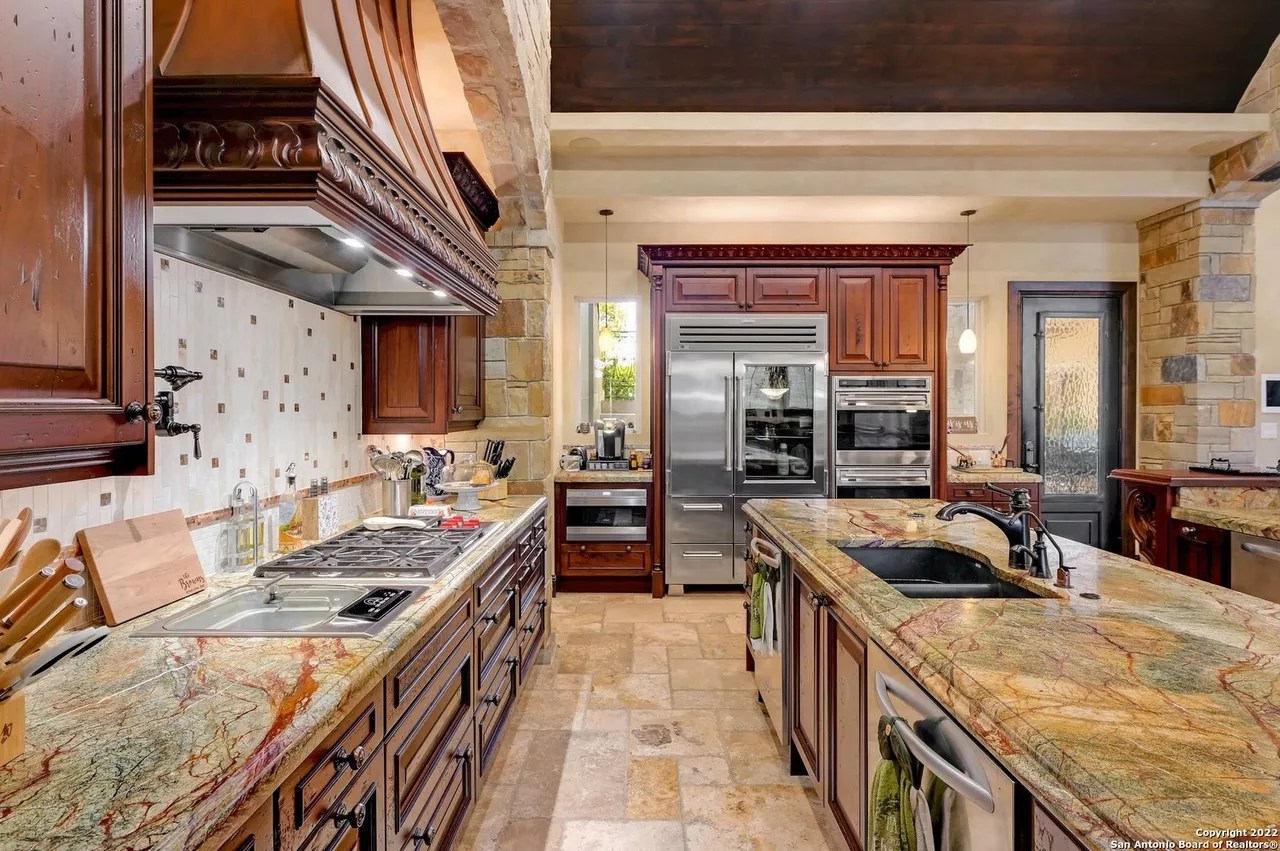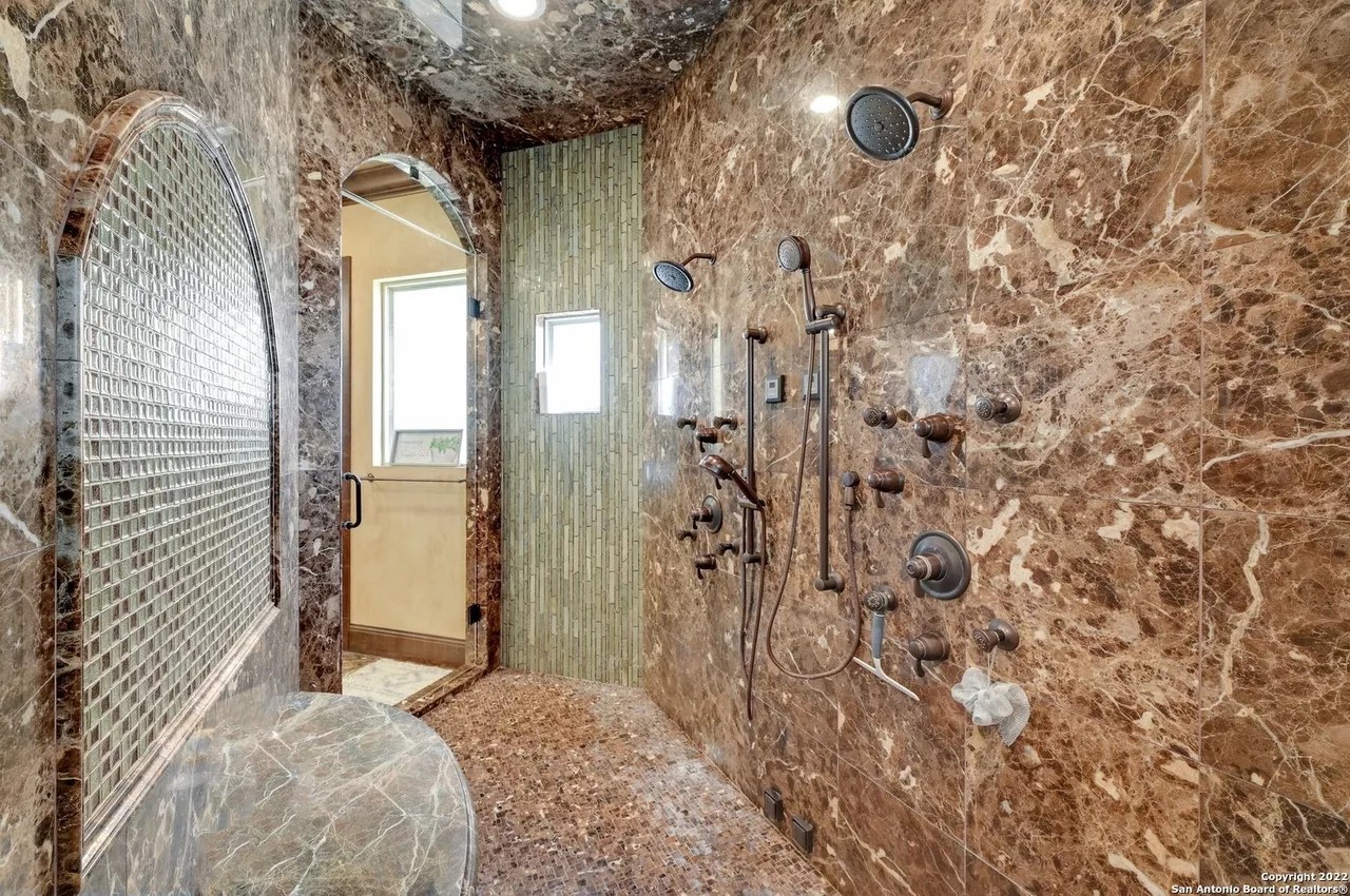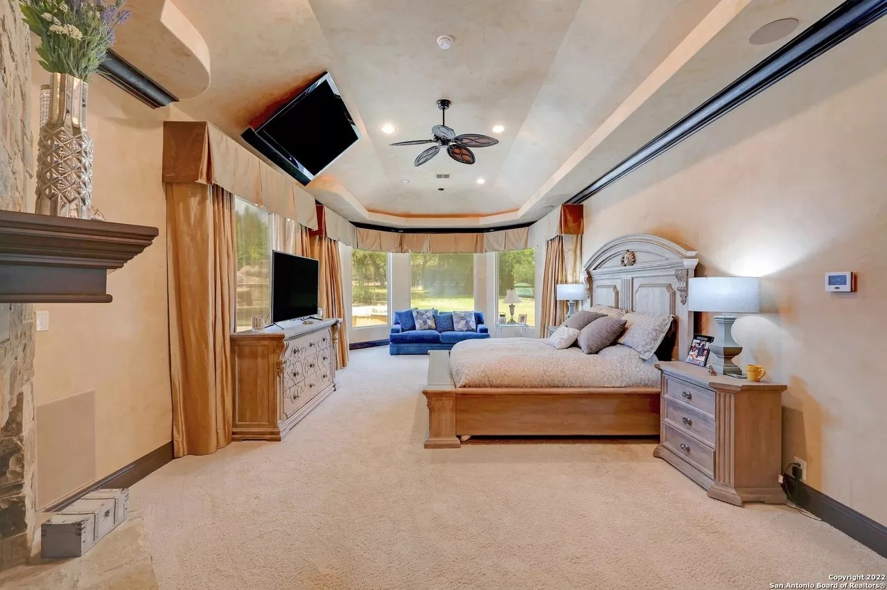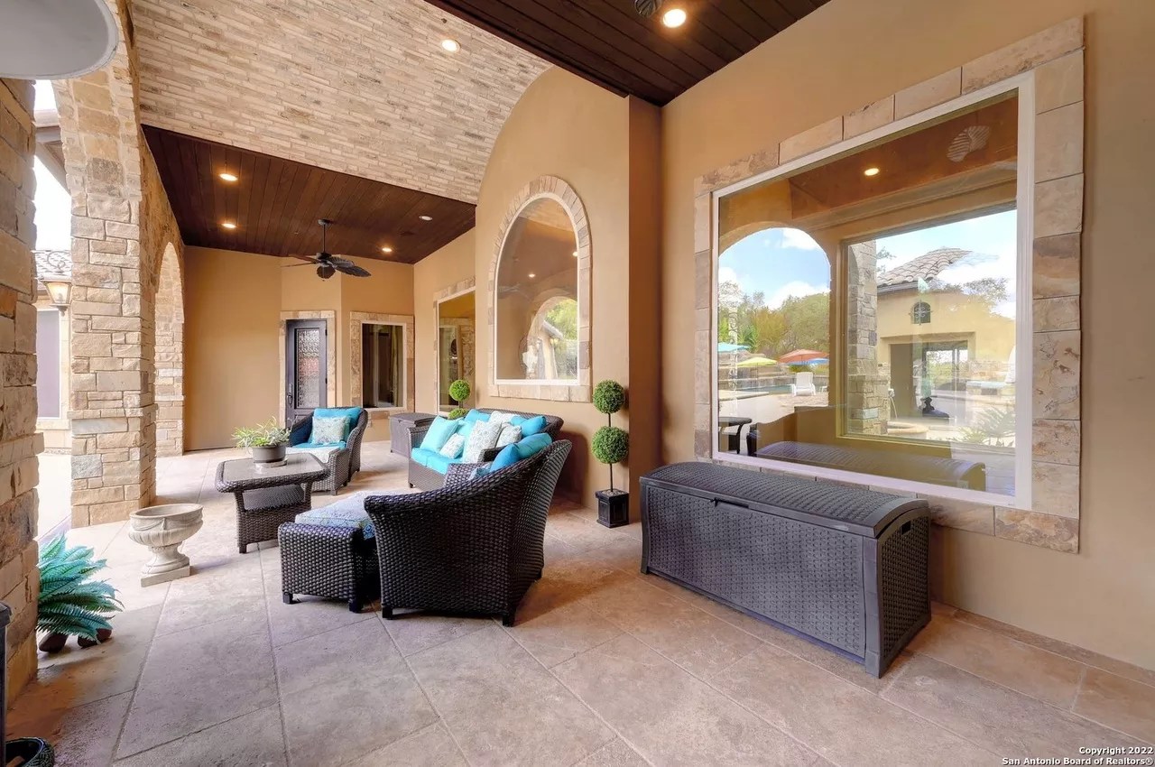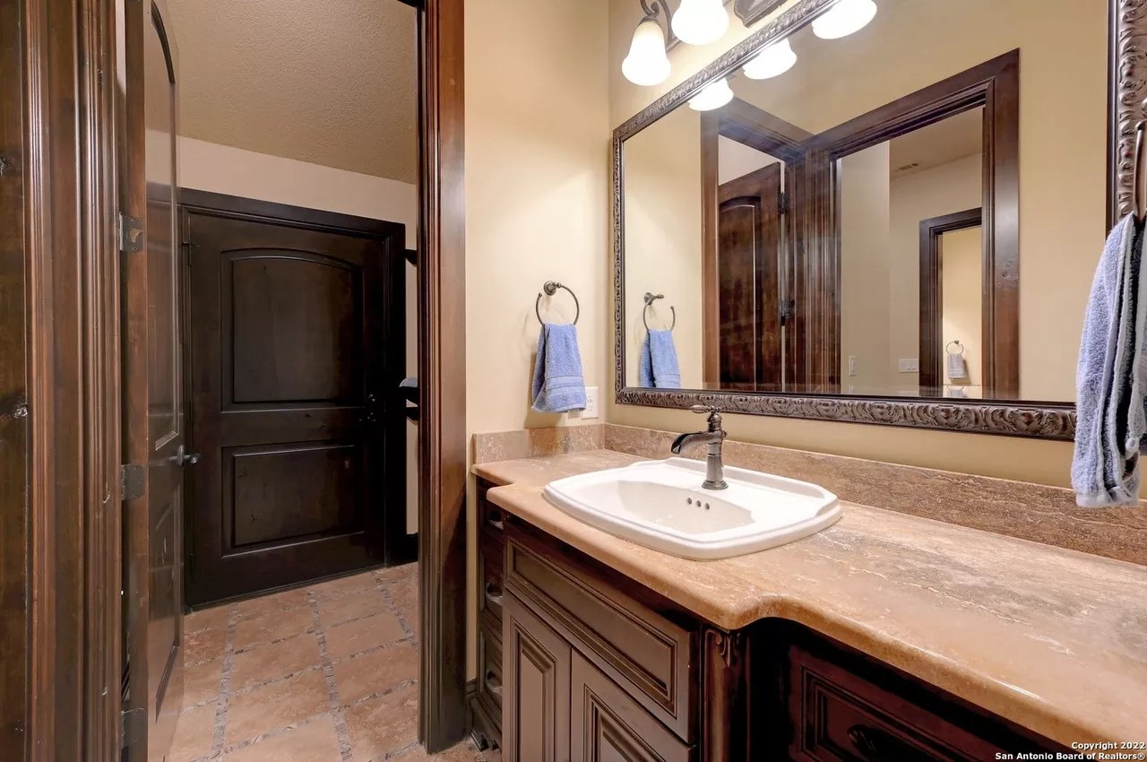 The sprawling New Braunfels home boasts bays for seven vehicles plus hydraulic lifts and compressed air for tools in its two garages.