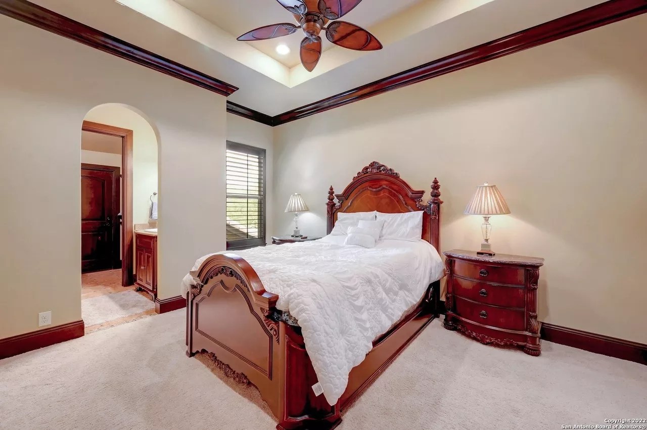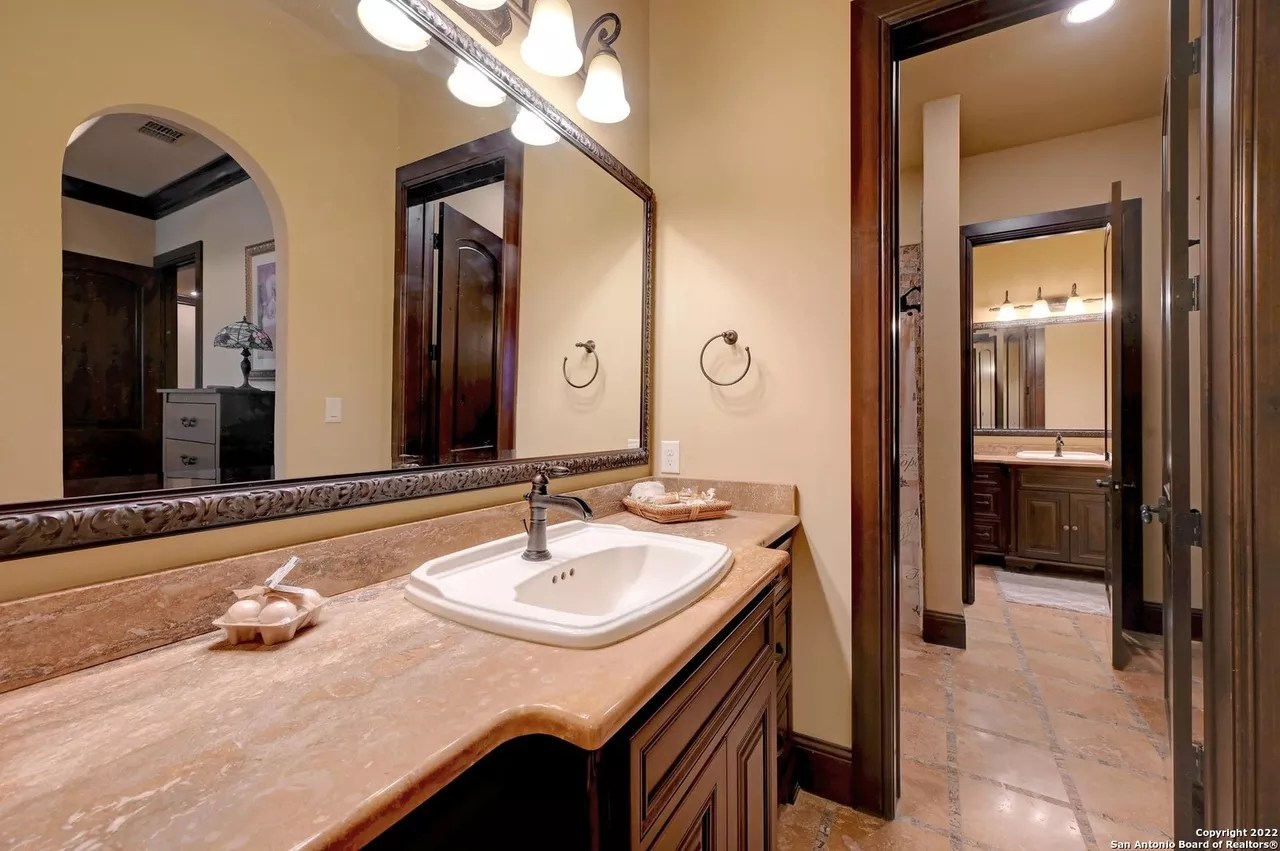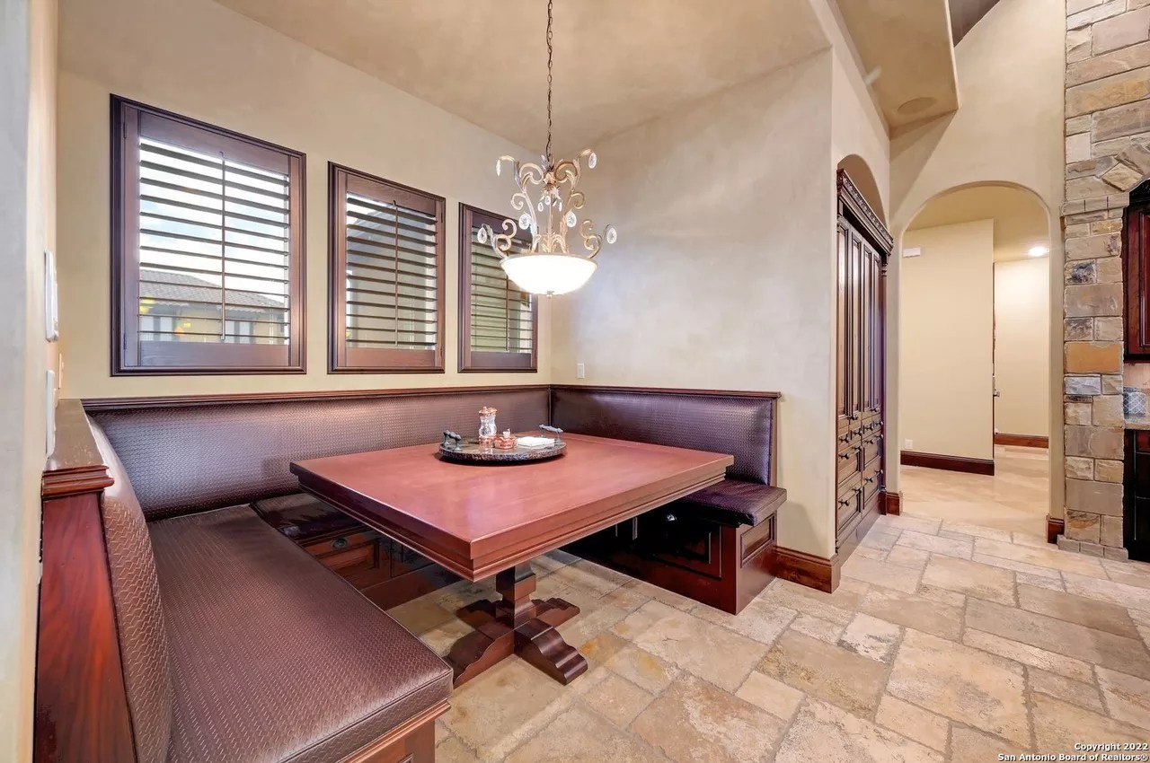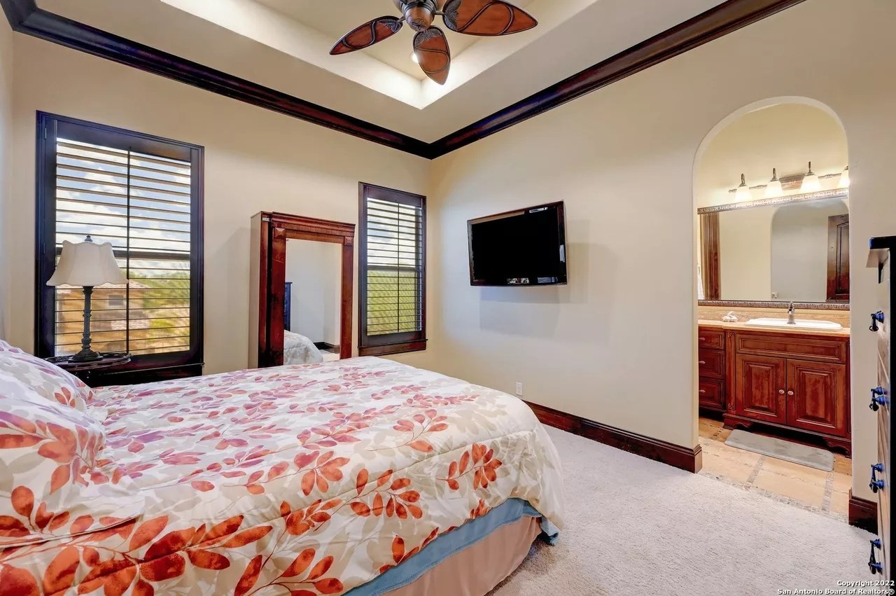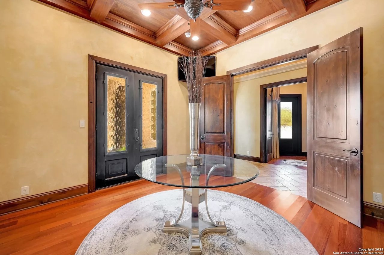 The sprawling New Braunfels home boasts bays for seven vehicles plus hydraulic lifts and compressed air for tools in its two garages.