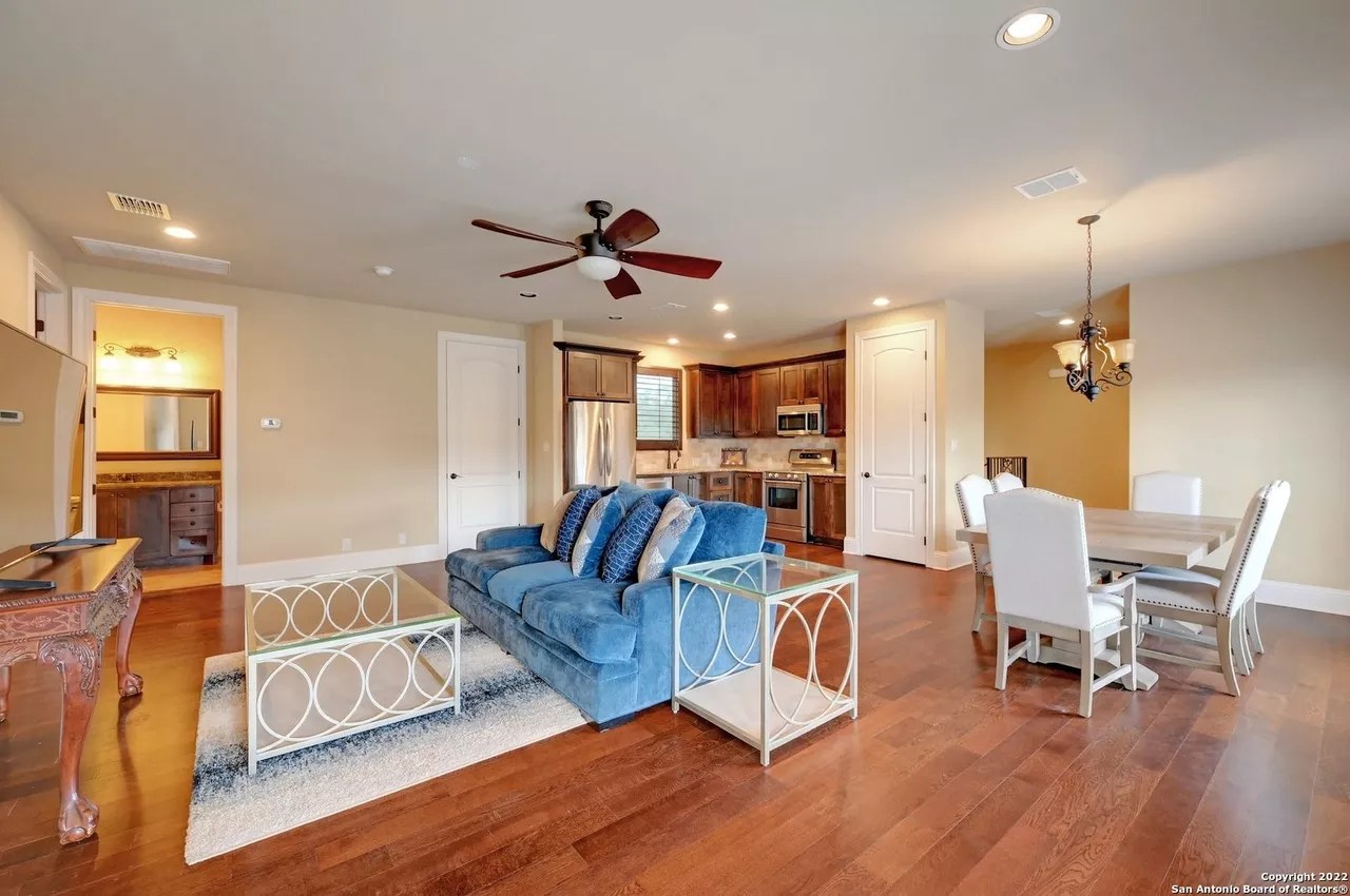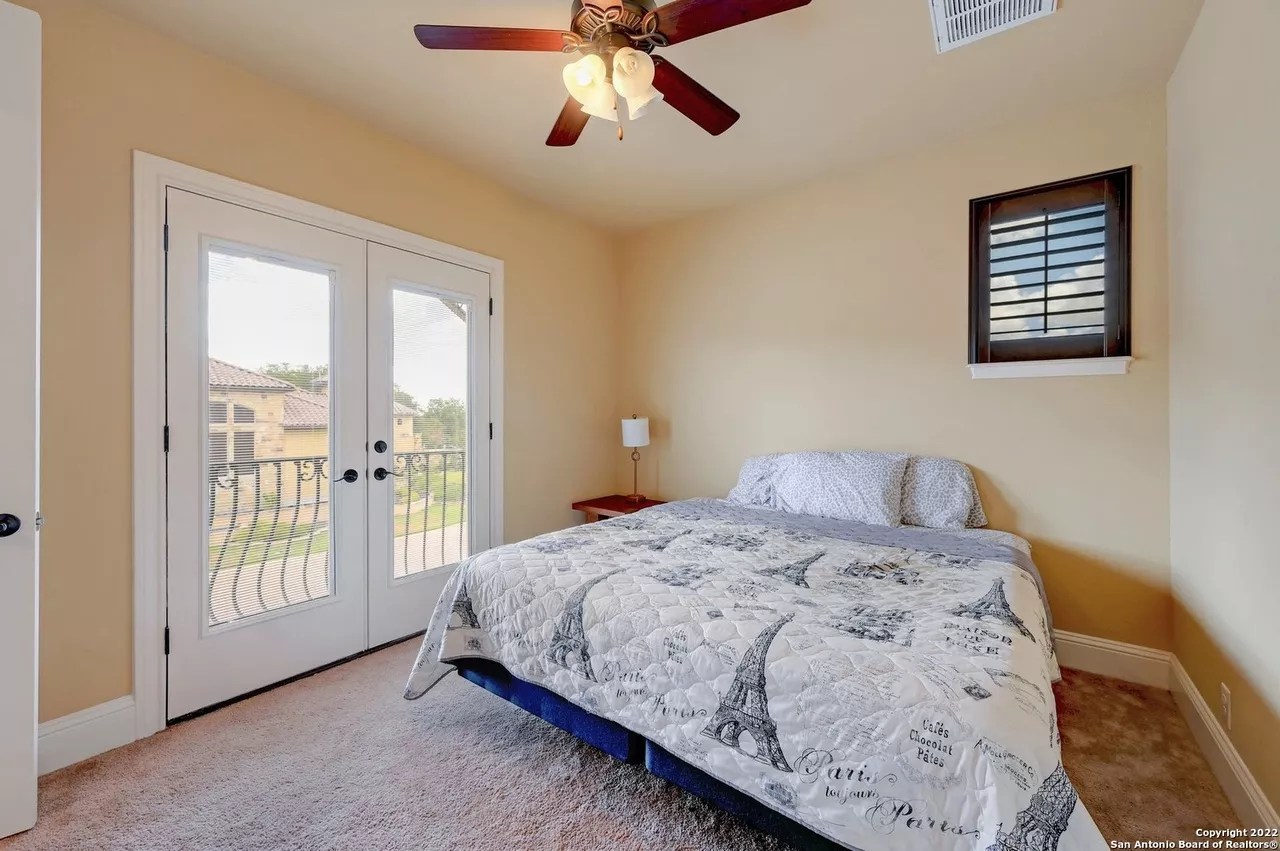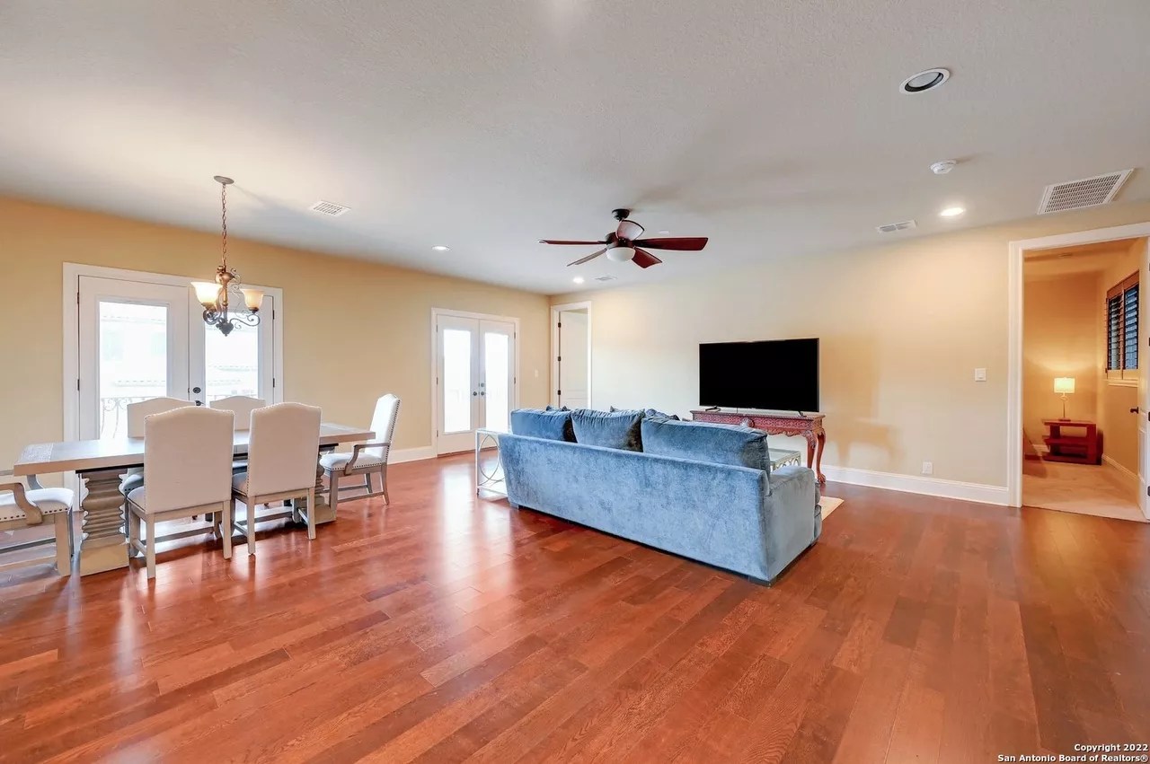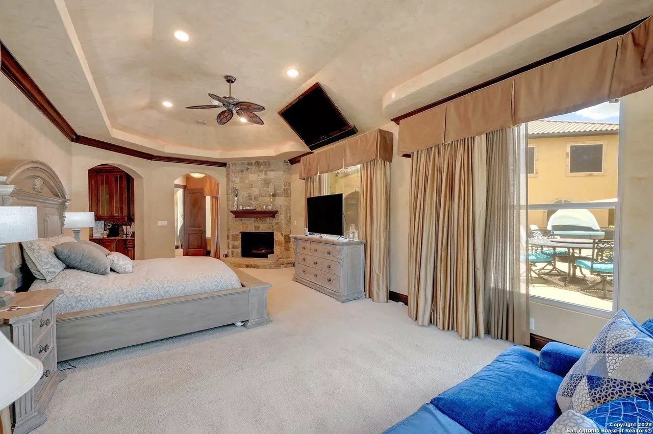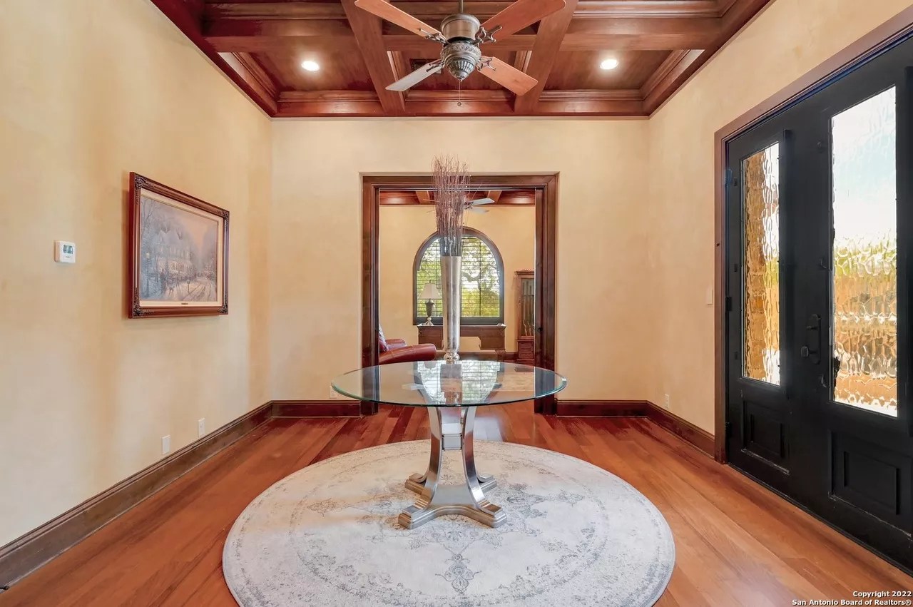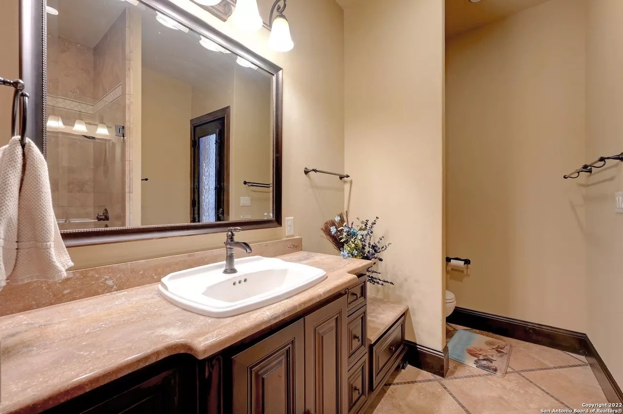 The sprawling New Braunfels home boasts bays for seven vehicles plus hydraulic lifts and compressed air for tools in its two garages.
