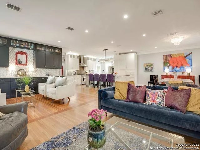 While the goldenrod paint job and Spanish-style exterior details of the $525,000 property don’t exactly hint at the modern upgrades inside, one look at the open and airy floor plan and it’s clear someone wanted the kitchen to have a starring role.