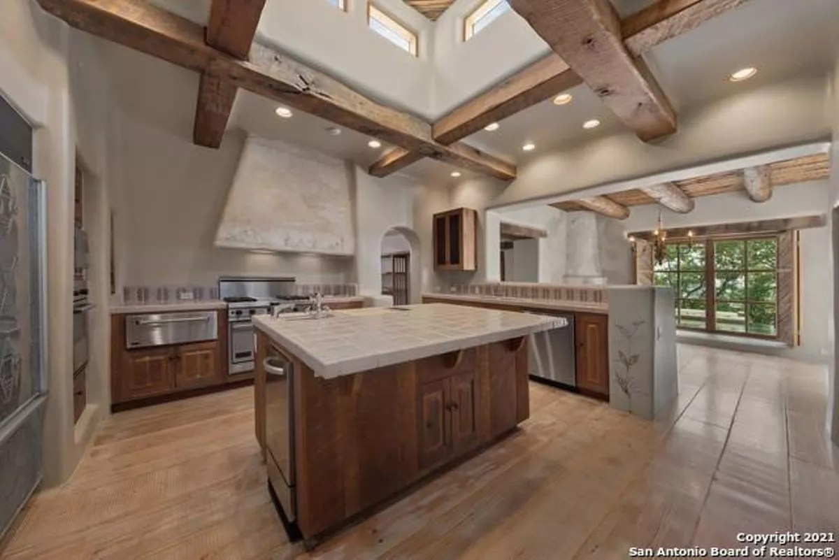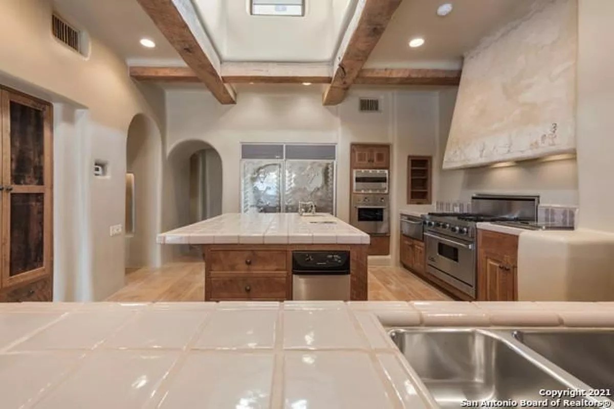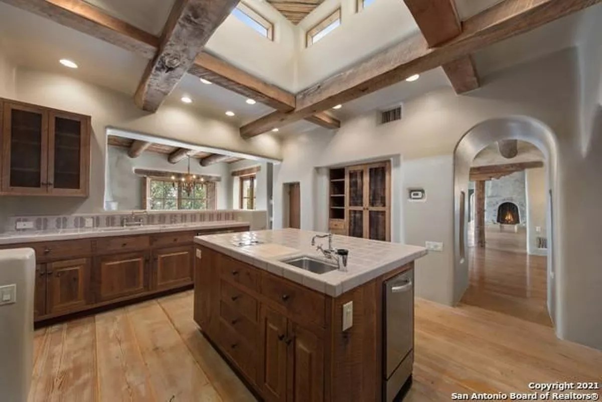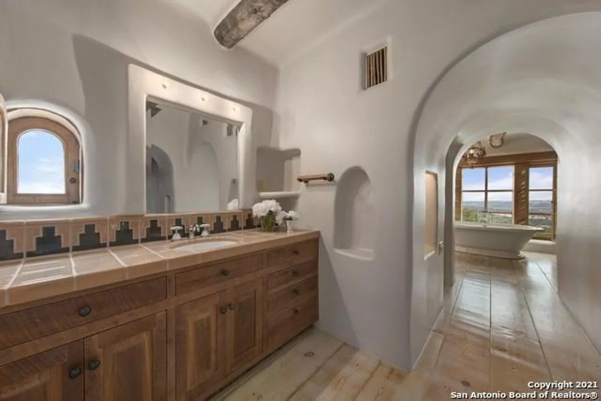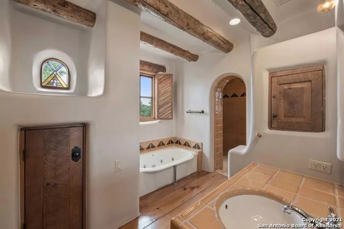 Despite the continued price slide, the 8,000-square-foot mansion remains a San Antonio showstopper. Designed by sculptor-turned-architect Bill Tull, the home features custom stained glass and murals, 14 hand-sculpted fireplaces and a safe room that looks like a bank vault from a Western movie.