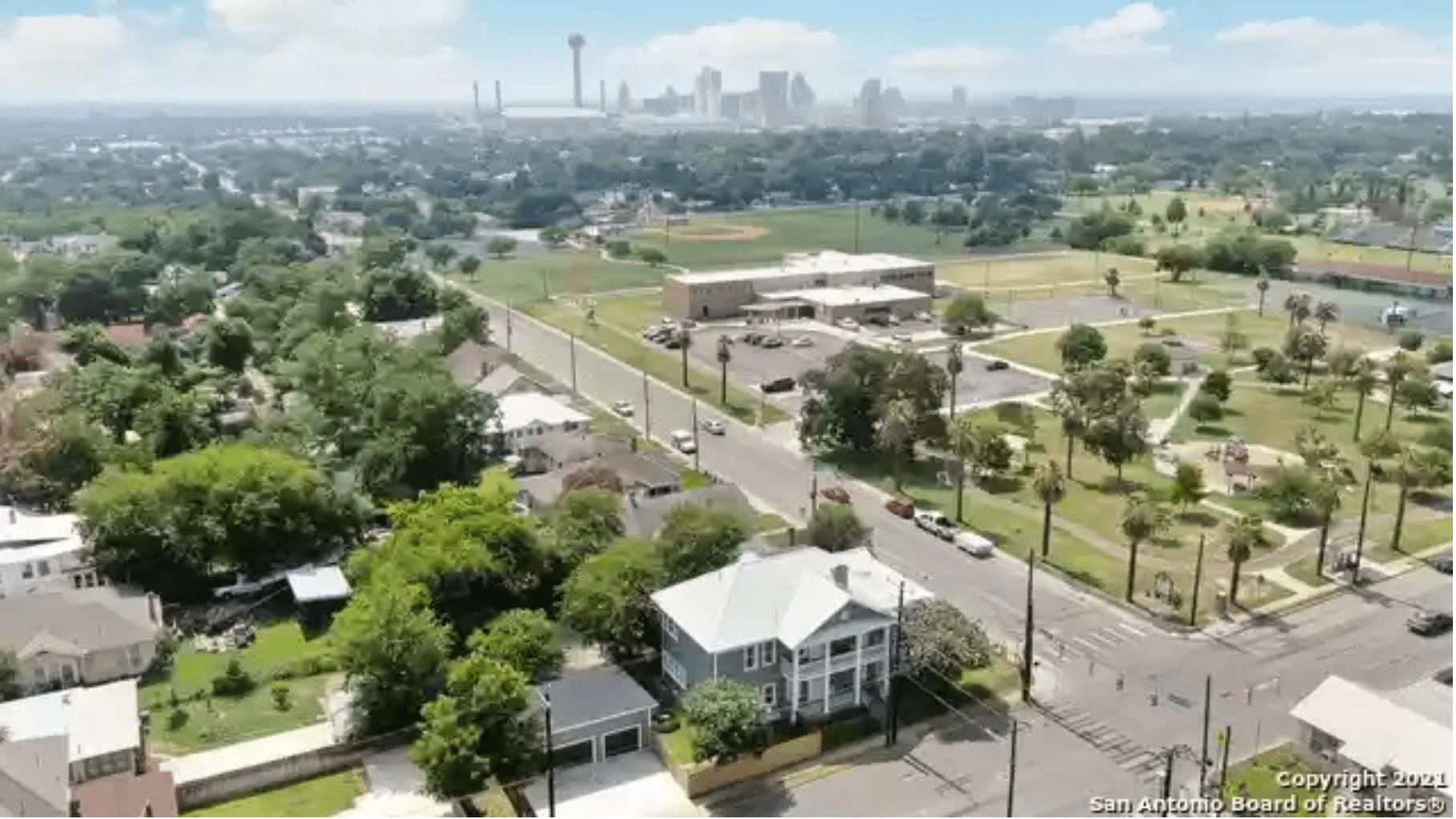 The painter’s four-bedroom, three-and-a-half-bath property features the hardwood floors, architectural details and sweeping ceilings one expects to find in hundred-year-old Alamo City homes. It also includes an unusual addition for houses of that era: a three-car garage.