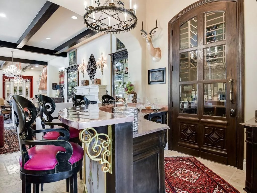 Ever wanted to move into a gorgeously landscaped Spanish-style hacienda with the heads of exotic game hanging from the walls and a bar in its foyer that’s equal parts Old West saloon and the Palace of Versailles?