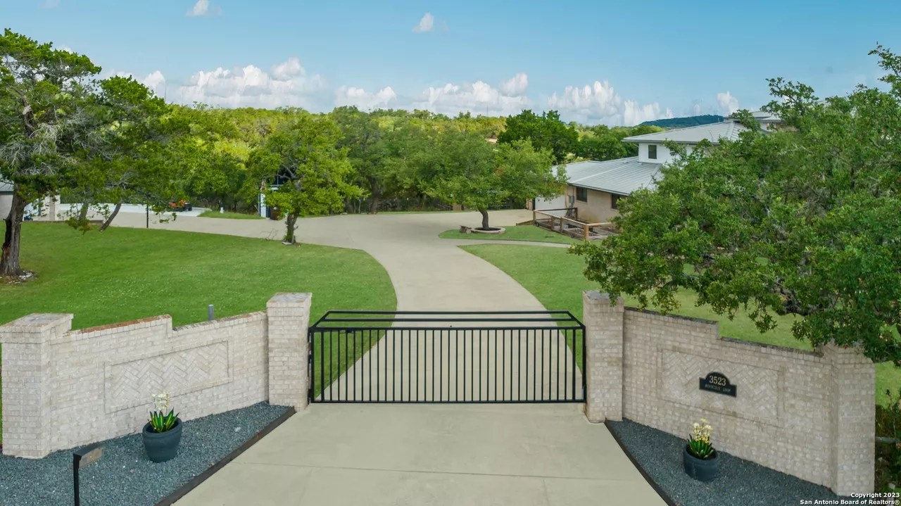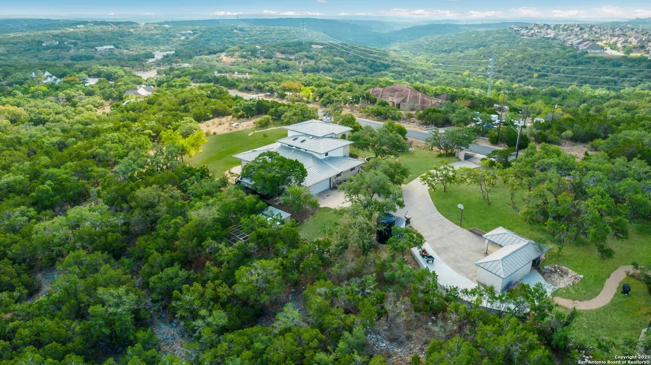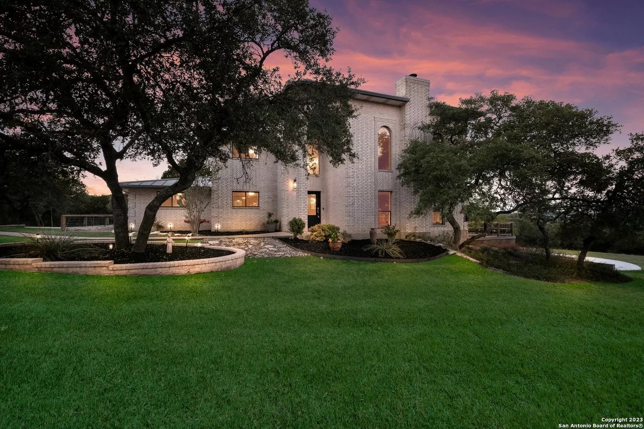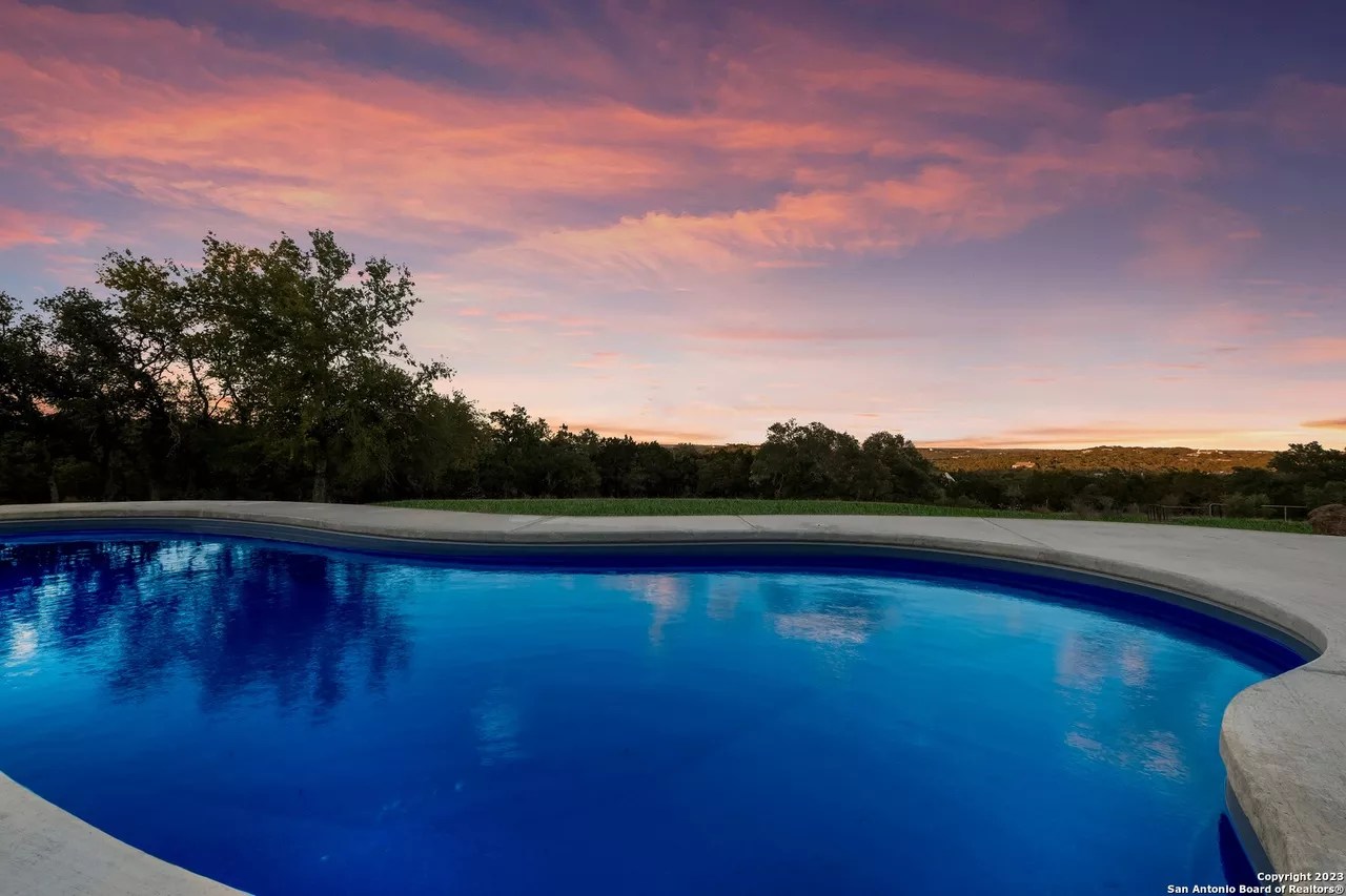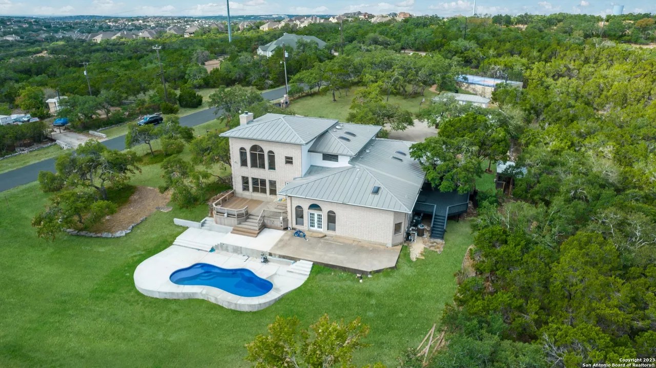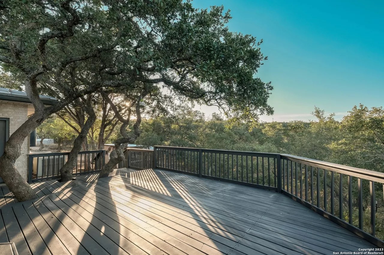 A 4,278-square-foot home currently listed for sale in Stone Oak sits on five acres of land with unobstructed views of Hill Country from its large deck. For those who like to sport in style, it also features a saltwater pool and a basketball court.