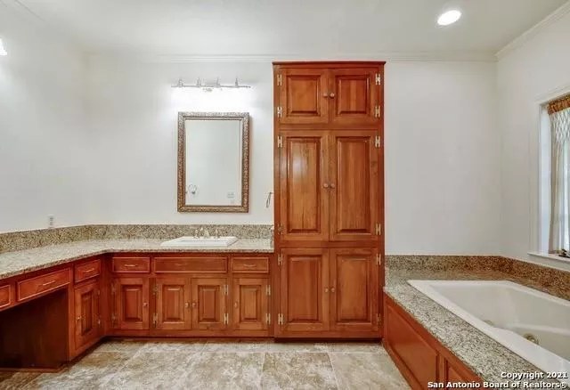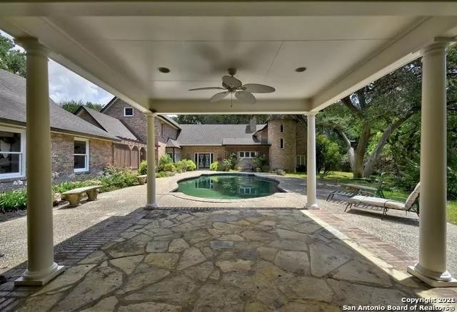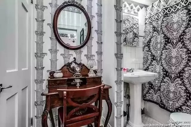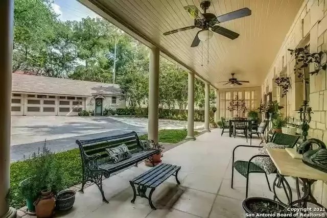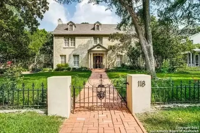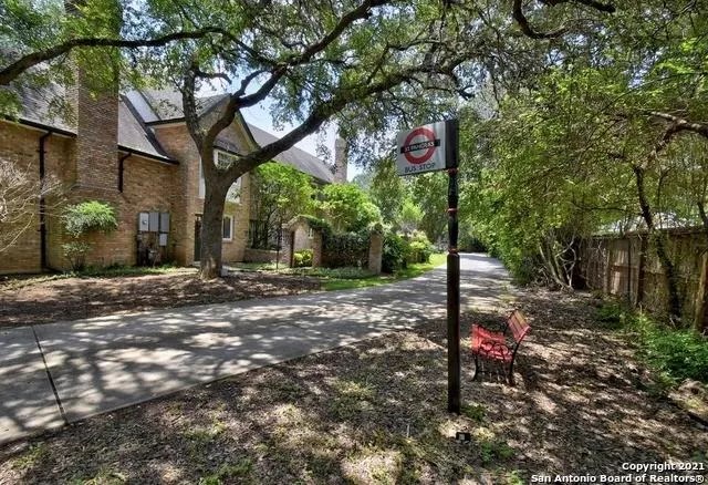 Set in the neat greenery of a two-acre estate in Hill Country Village stands a classic, bright-red British telephone booth. Signs around the park-like property are also emblazoned with the names of famous British landmarks, including St. Pancras Station.