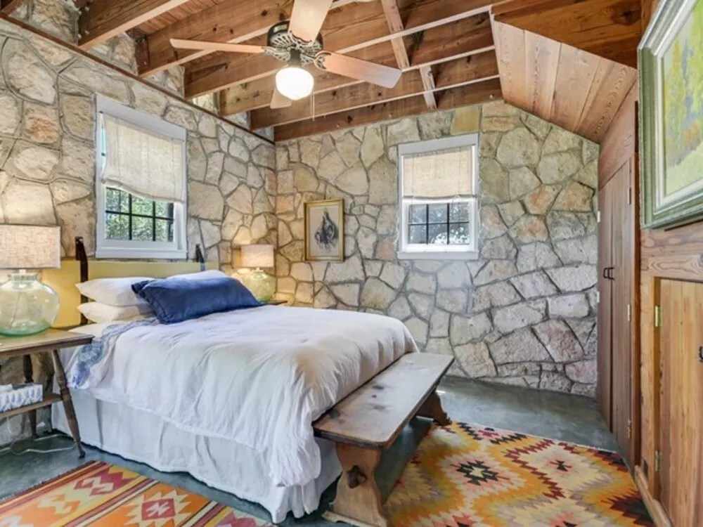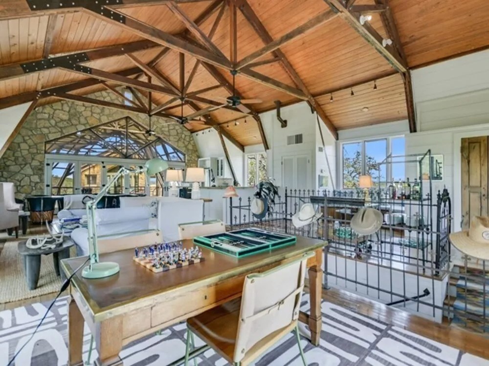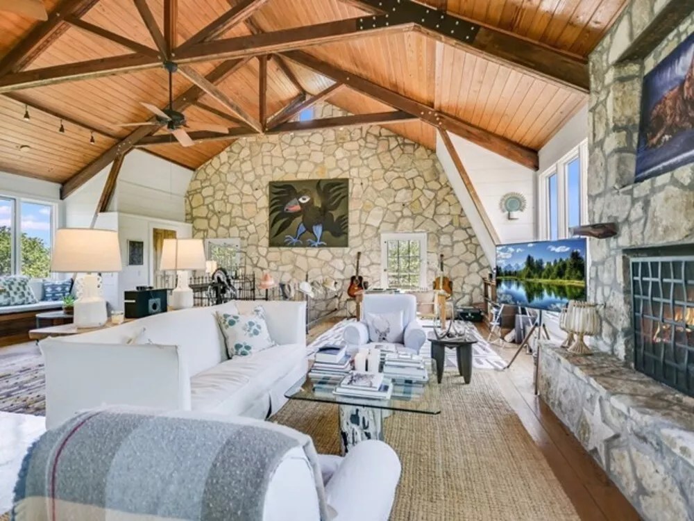 Beyond that, the home comes with a 55, 000-gallon rainwater collection system, a rock swimming pool and a “thriving” vegetable garden and orchard. Built in 1996, the compound also includes a barn and a workshop.