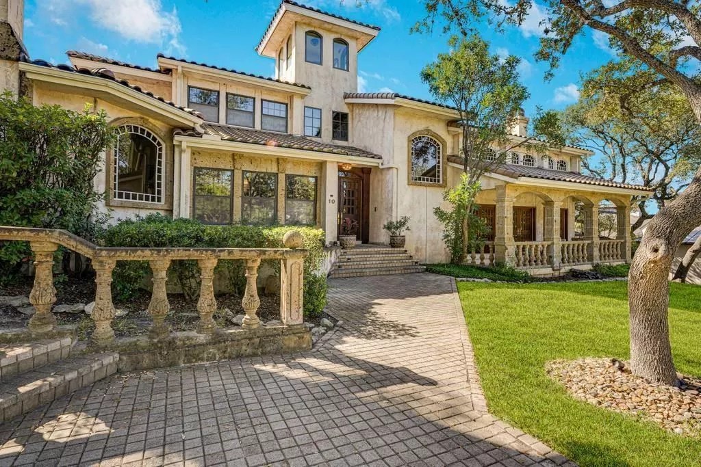 From its clay roof, wrap-around front porch and old-school cement railings, this hacienda-style mansion embodies an uber-1980s take on elegance.