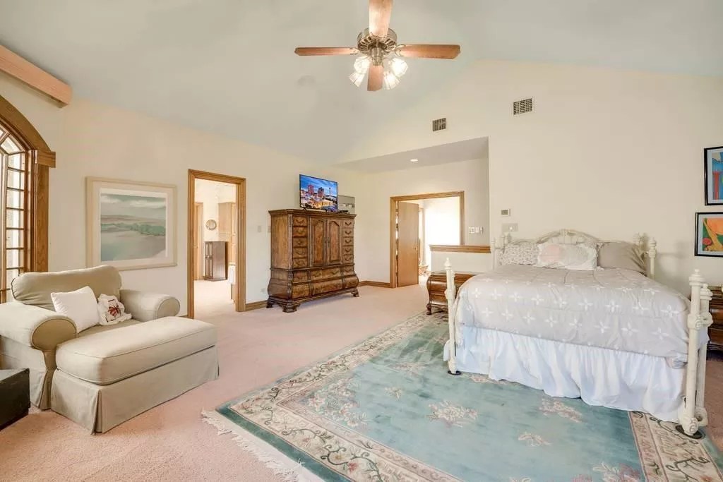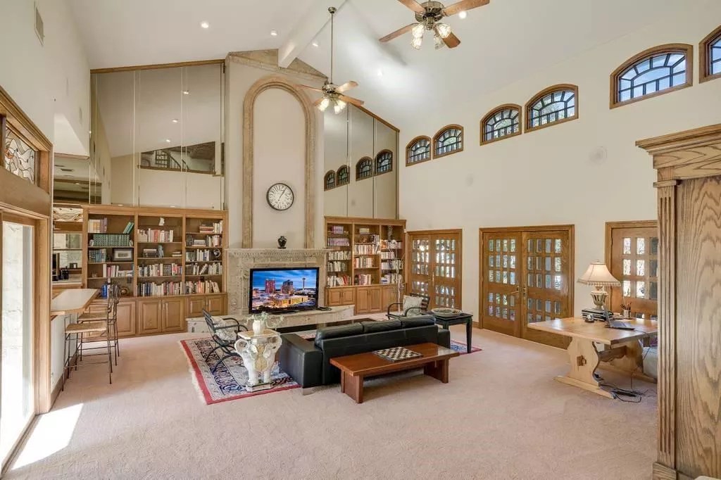 The four-bedroom, four-and-a-half-bath is on the market with an $895,000 price tag. Beyond more than 5,000 square feet of living space, that includes lots of mirrors, natural light, silk and cork wallpaper, cavernous ceilings and other oh-so-’80s touches.
