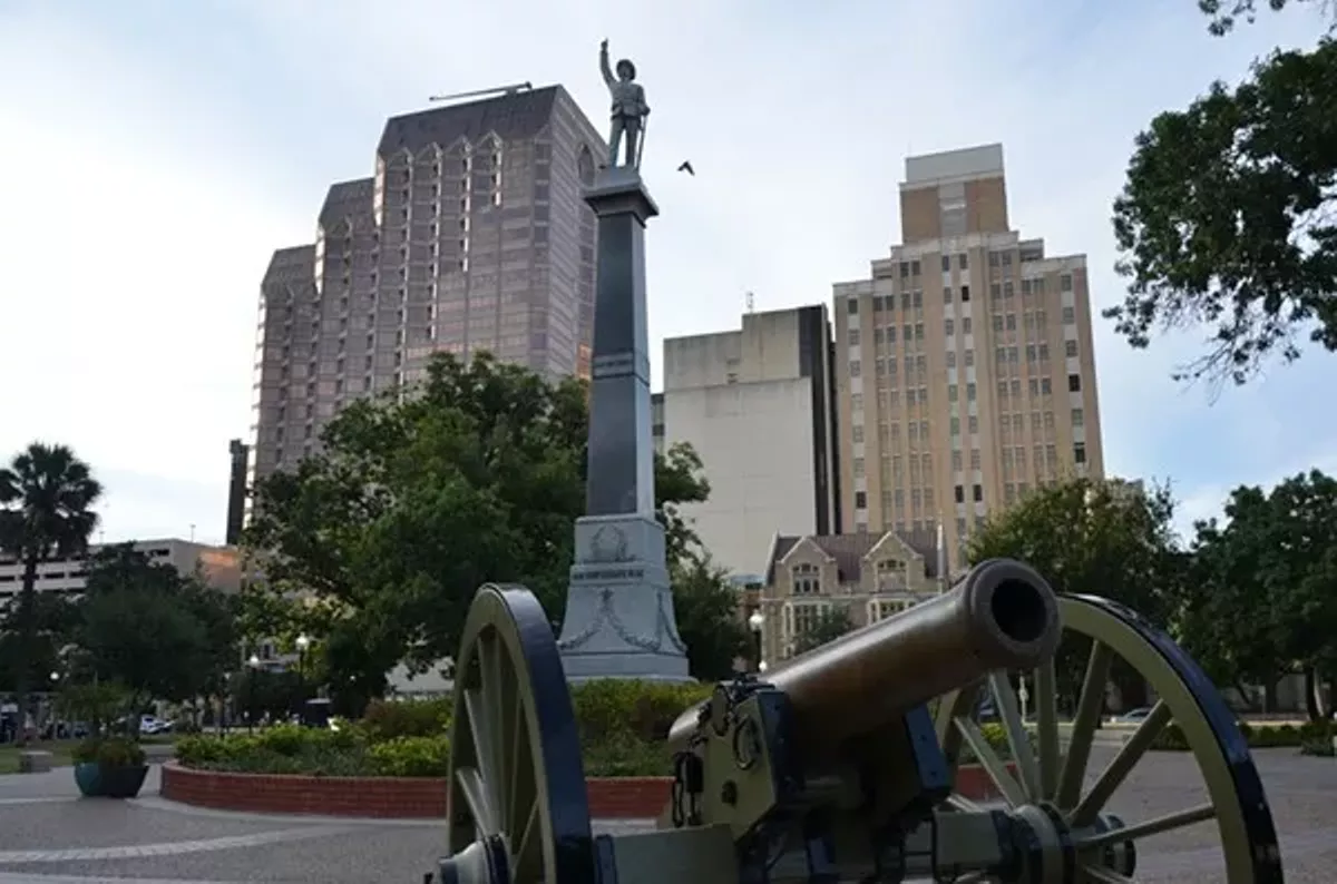 In the 1890s, a group of San Antonio women raised money through quilting bees and bake sales to erect a towering monument to the Confederacy in Travis Park. Beneath it, they buried a time capsule holding a folded Confederate flag and a Confederate soldier's Old Testament bible (along with other similar memorabilia).